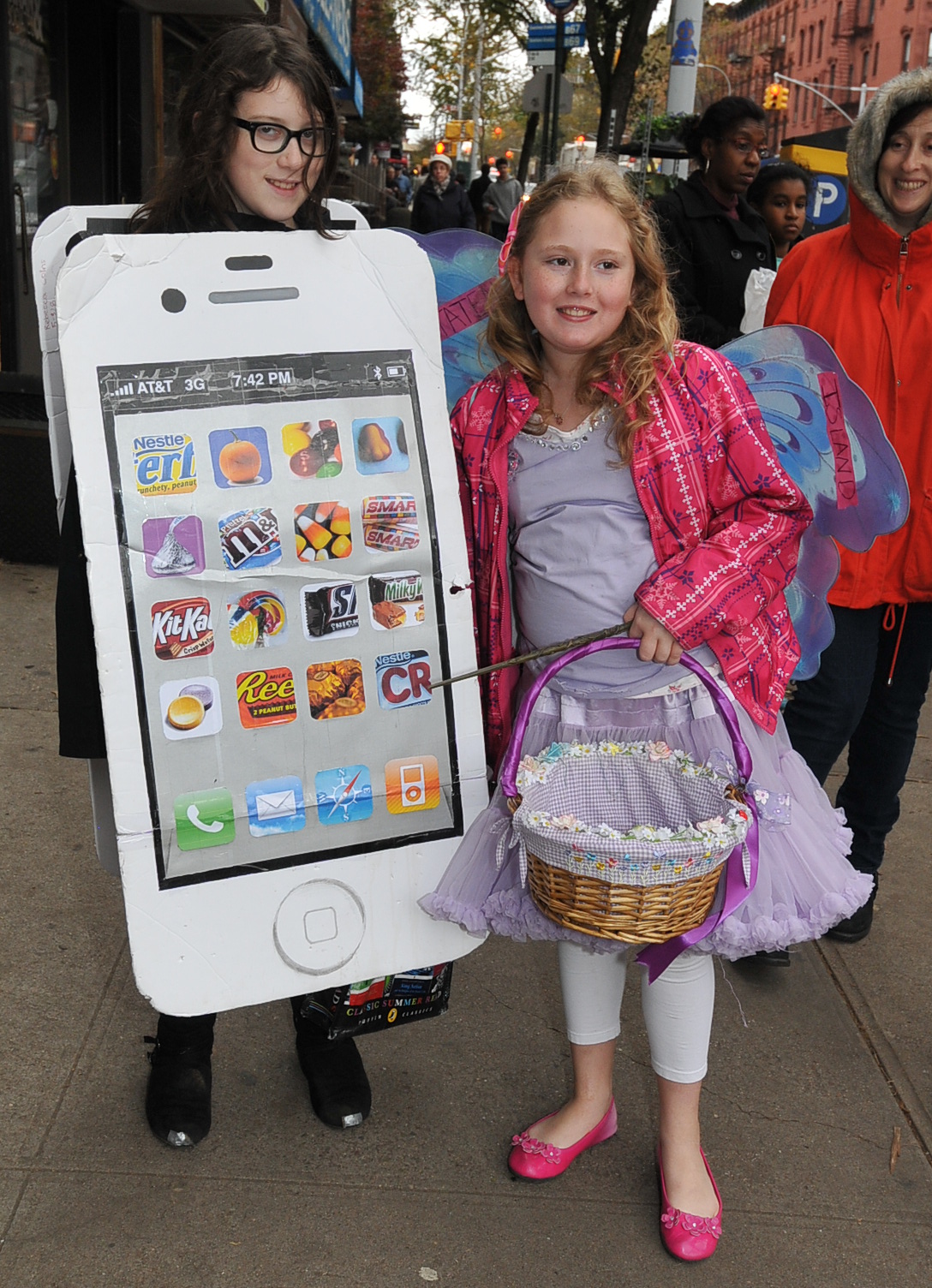 3:18 PM. An cellphone with candy icons, and a girl hunting for Easter eggs.