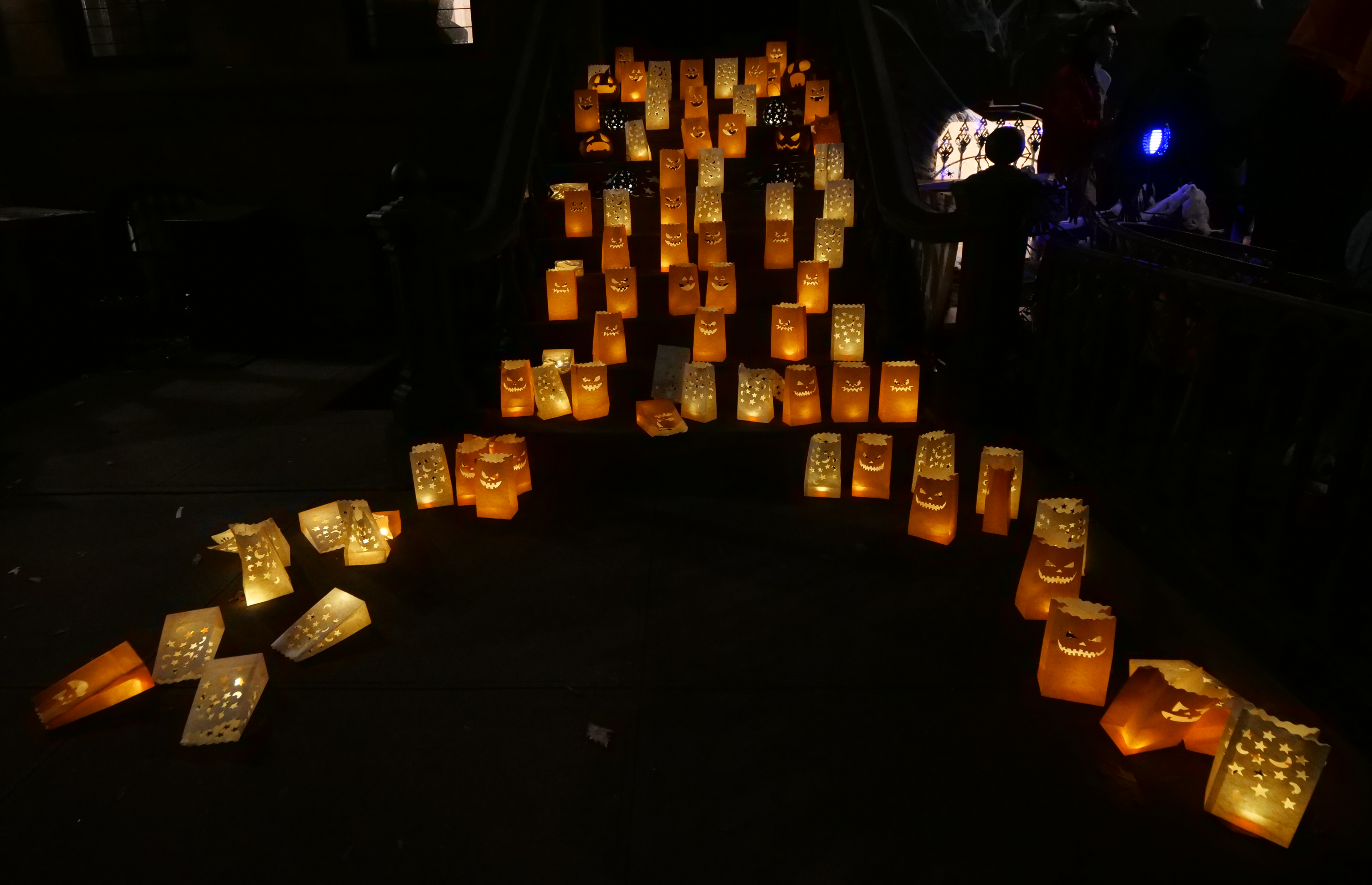 7:15 PM. 383 3rd Street. Paper lantern bags with LED lights. Mix of