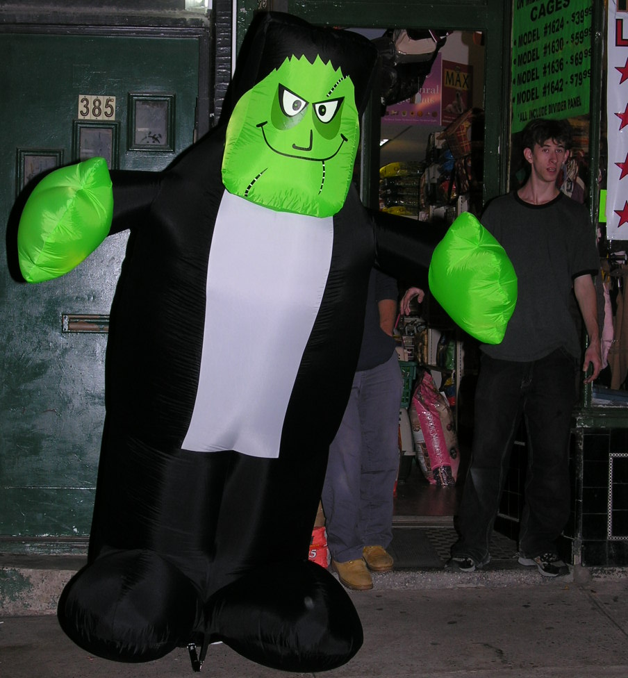 6:16 PM. Inflatable Frankenstein, but this was not a costume.