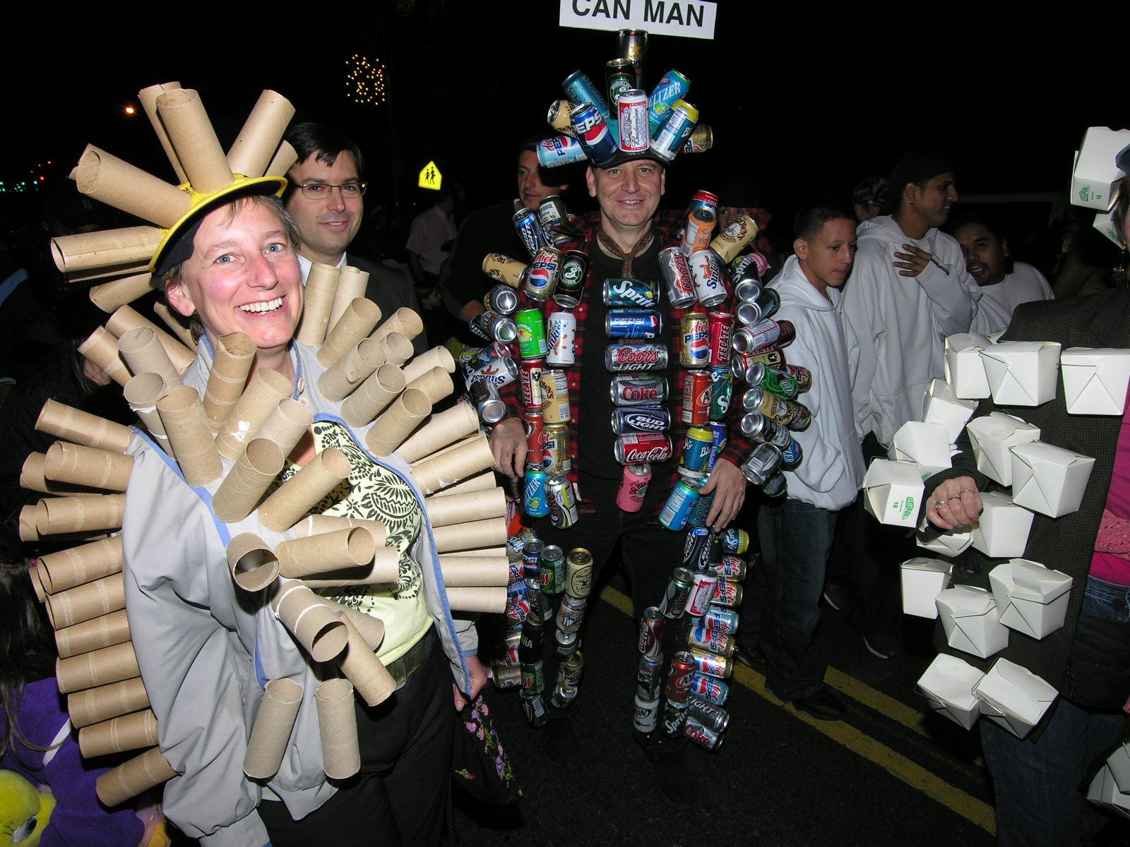 7:01 PM. Chinese egg rolls and half-pint takeout containers. This year with Can Man. Councilman David Yassky's face is between egg rolls and Can Man.
