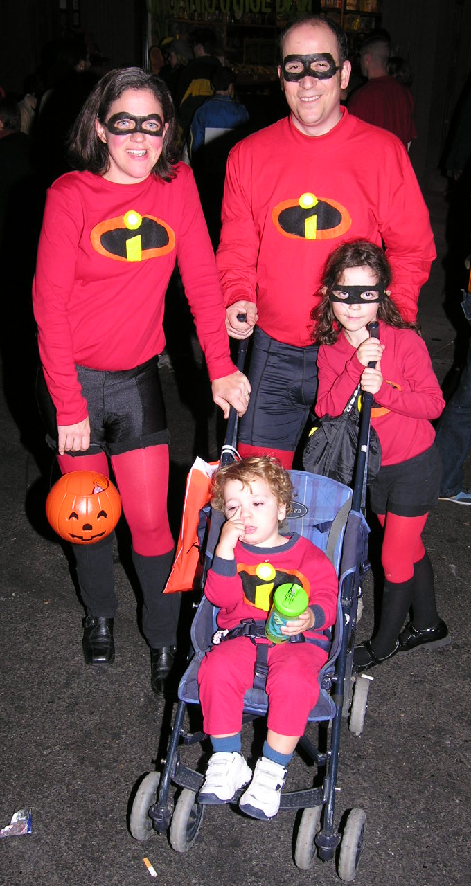 7:22 PM. Family dressed in costumes from the Pixar movie
