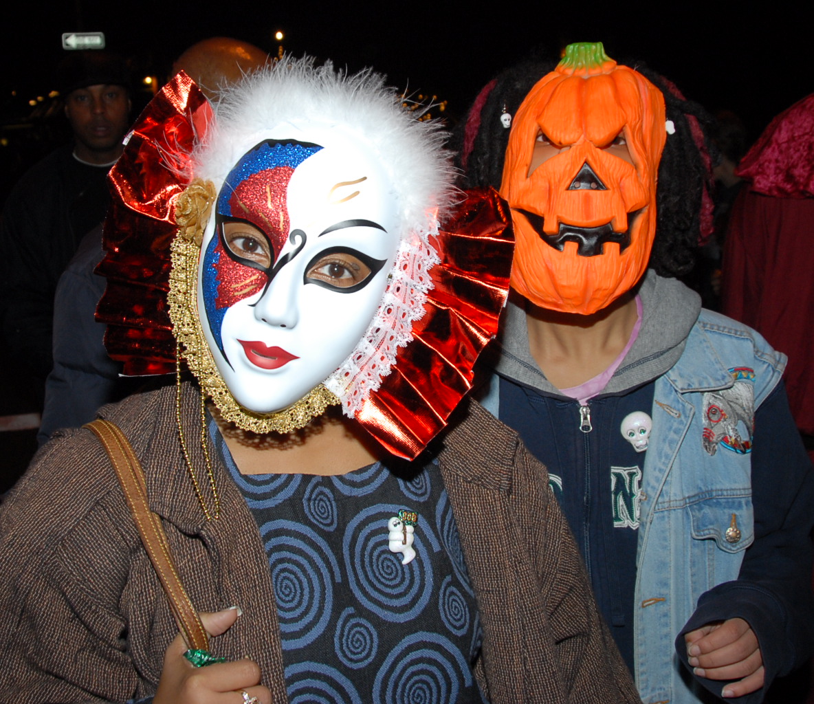6:36 PM. Venetian-style carnival mask and jack-o'-lantern face.