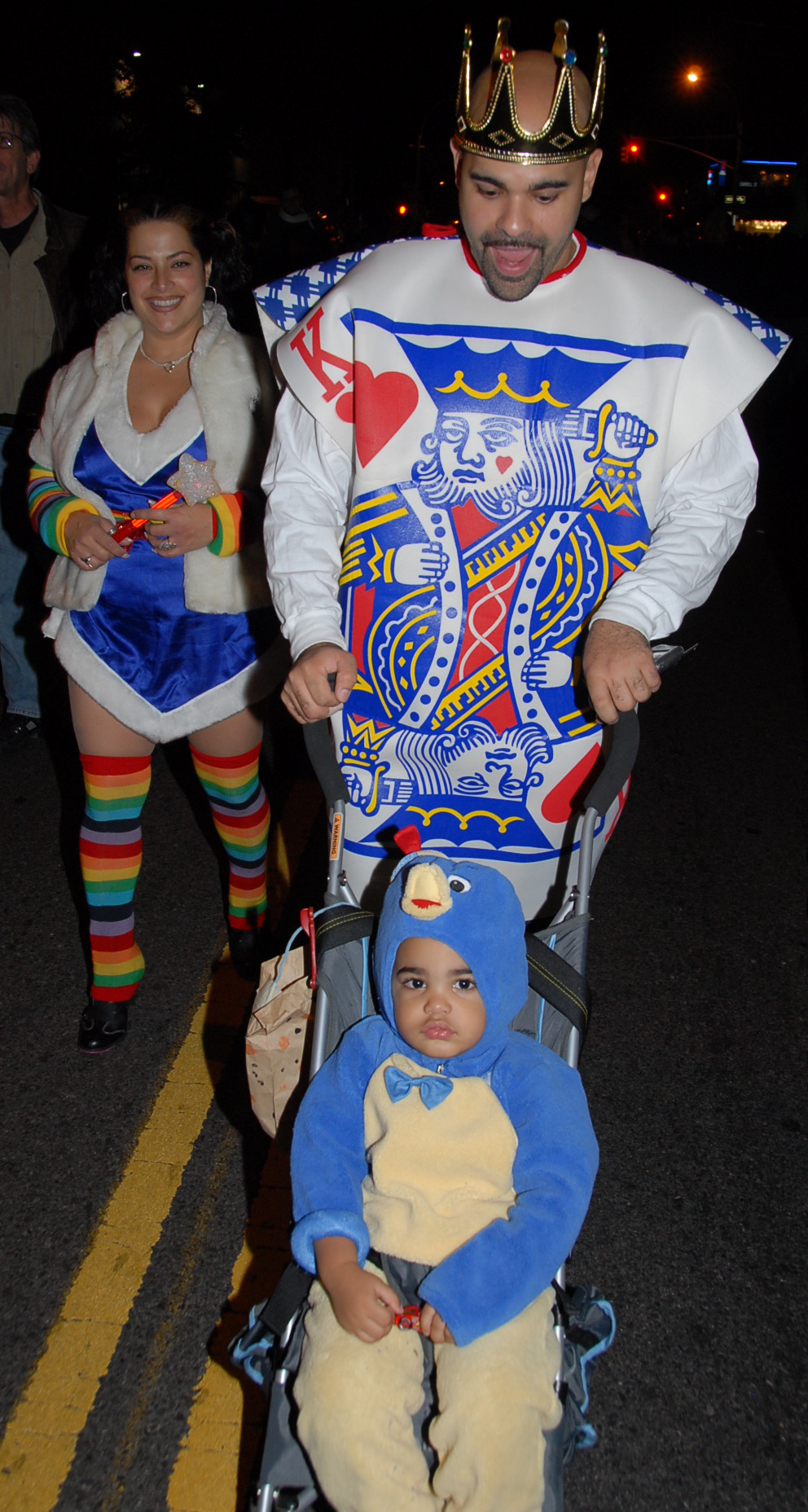6:57 PM. King and Queen of Hearts. Child is a penguin in a Pablo (The Backyardigans) Nick Jr costume.