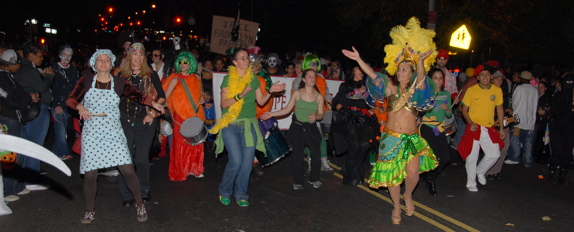 7:16 PM. Paprika Band with Carnival dancer in front, and cook at left.