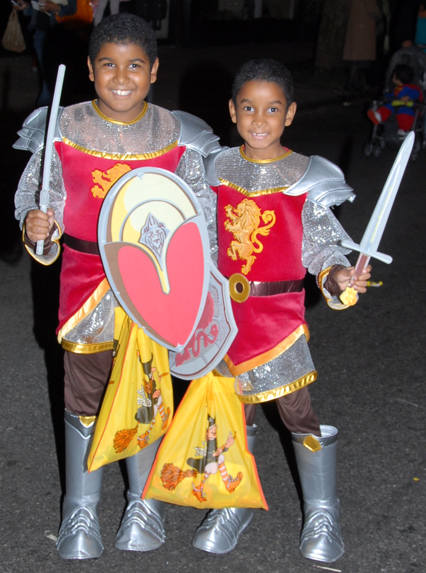 7:58 PM. Medieval knight costumes resembling Peter Pevensie from the movie