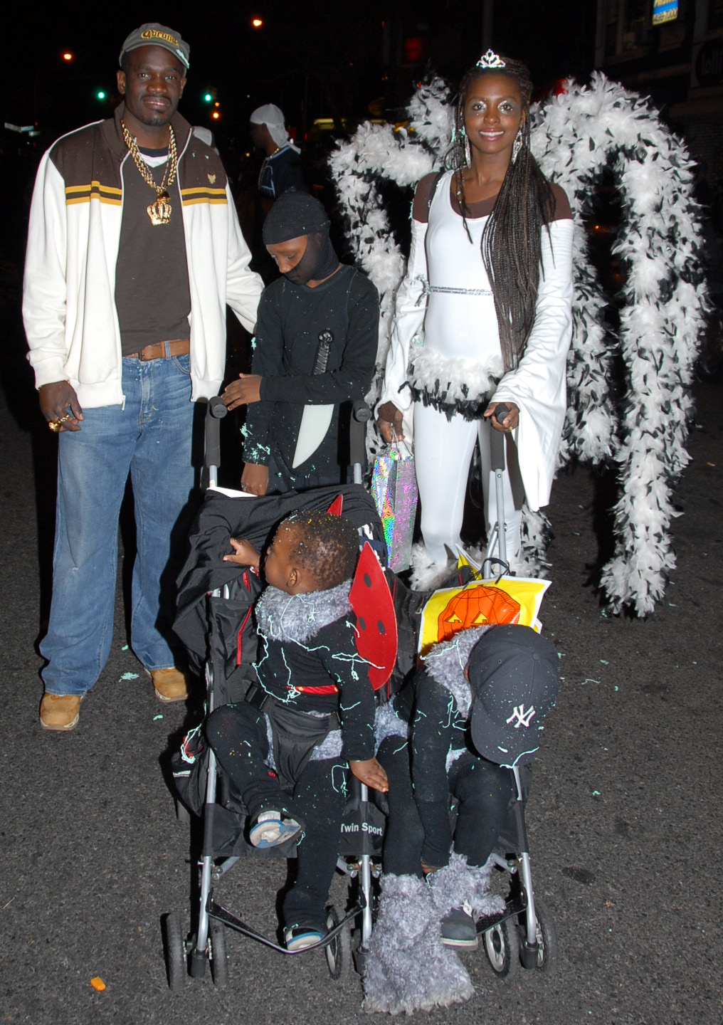 8:03 PM. Mom is an angel. In stroller is a lady bug.