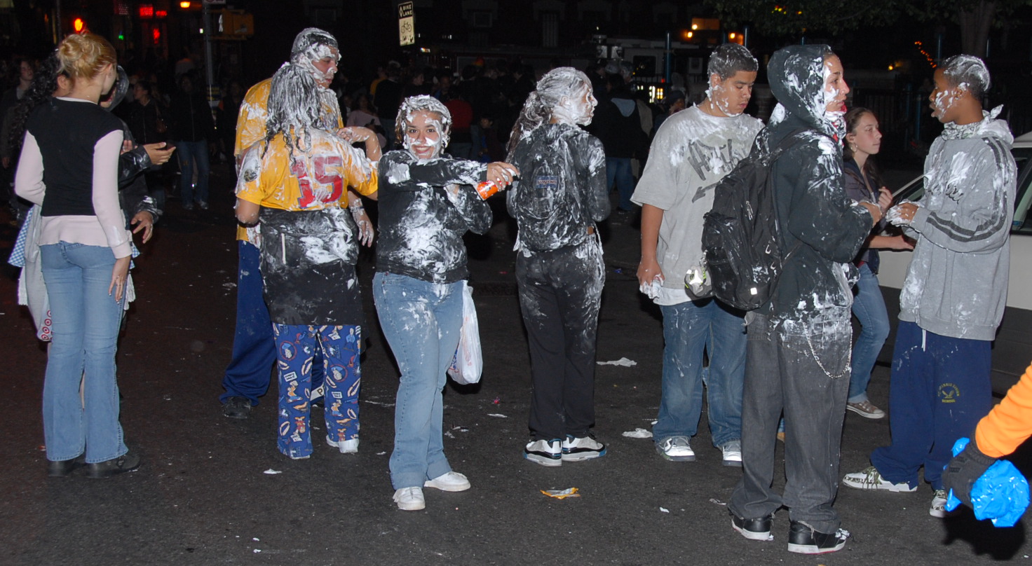 8:05 PM. Teenagers with shaving cream. They do this every year.