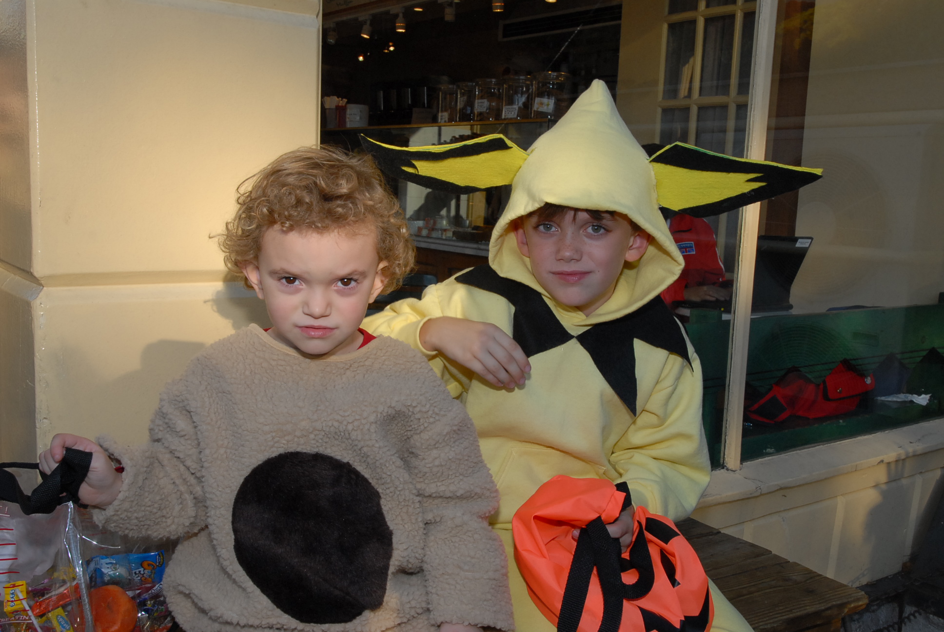 4:07 PM. A bear costume, Rilakkuma, a Japanese character from the company San-X. On right, a Pikachu character.