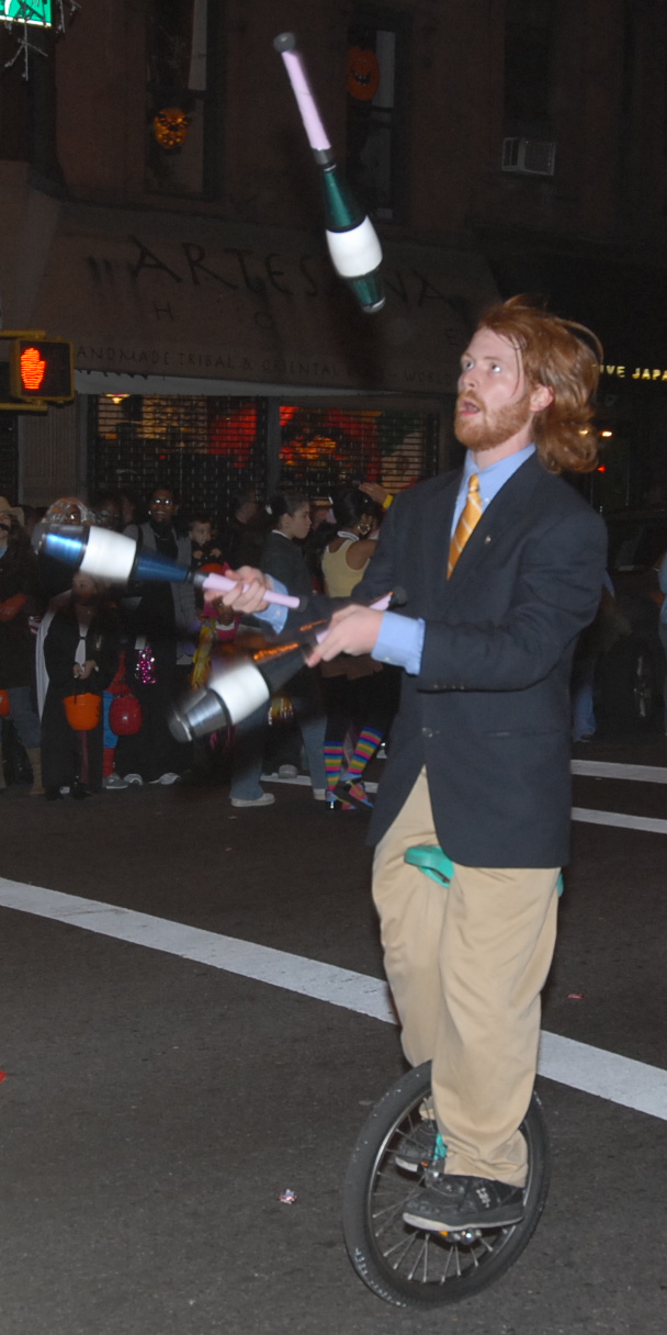 6:59 PM. Juggler on unicycle.
