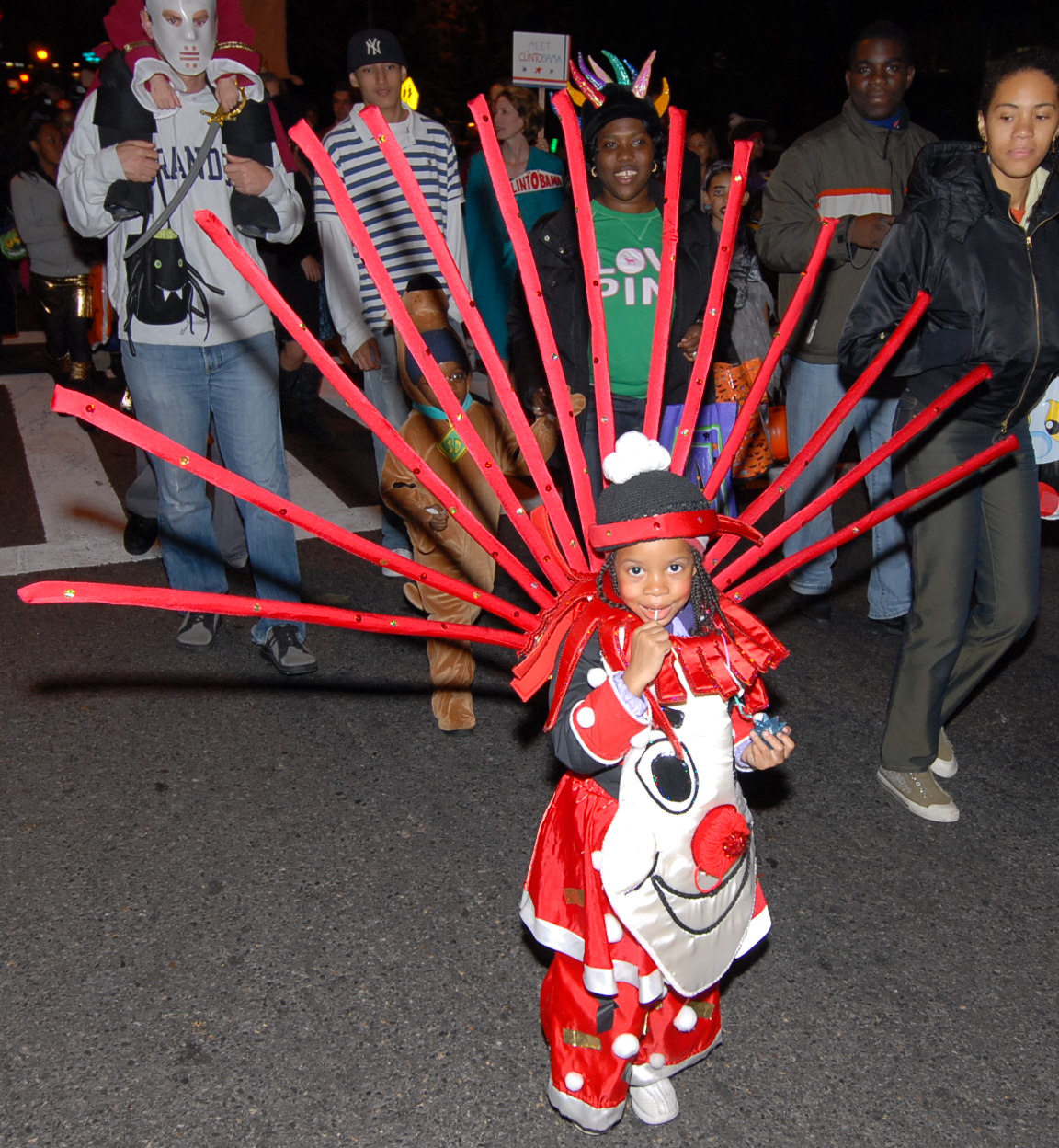 7:00 PM. A costume mimicing a West Indian carnival or parade costume.
