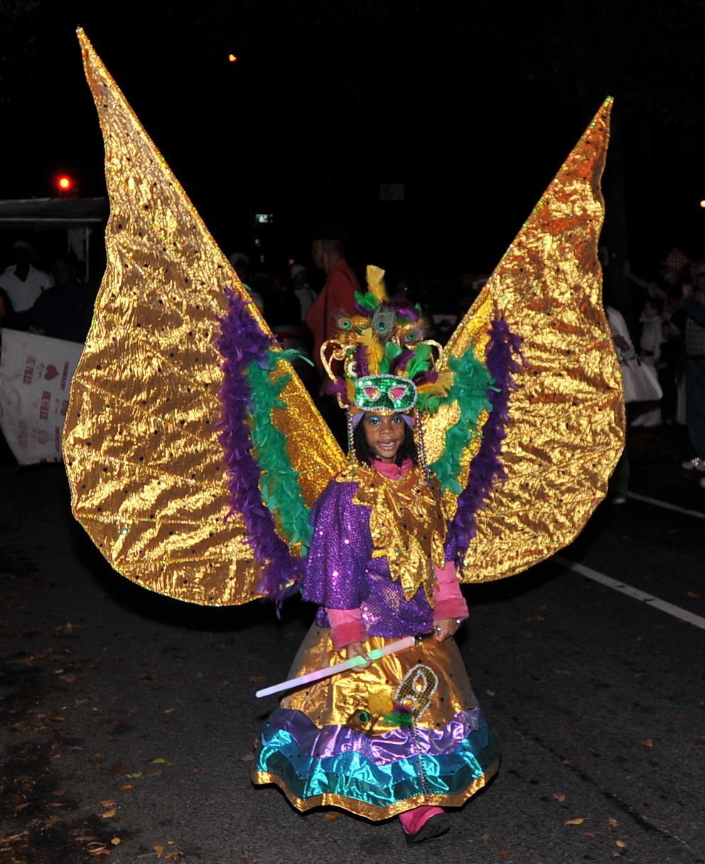 7:30 PM. Carnival costume. The colors are the official colors of Mardi Gras.