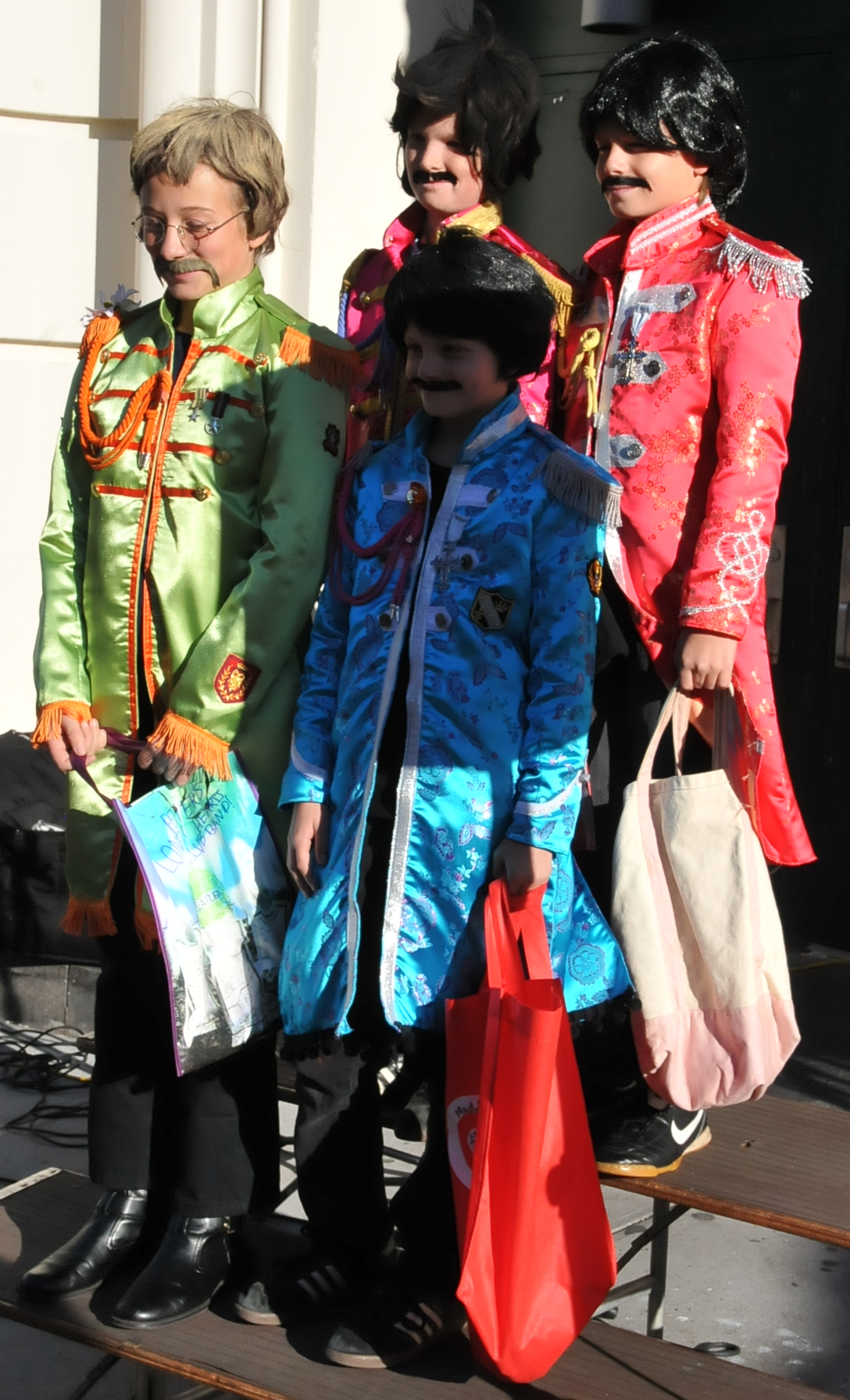 4:01 PM. The four Beatles in Sgt. Peppers costumes.