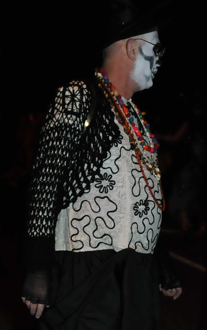 7:04 PM. A costume inspired by Día de los Muertos, also known as the Day of the Dead.