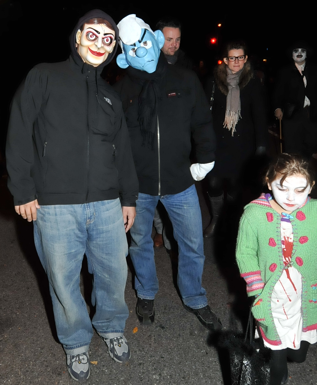 7:10 PM. A ventriloquist's dummy mask and a Smurf.