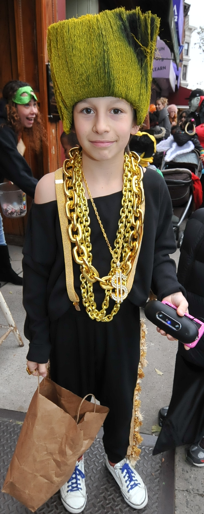 5:17 PM. A hip-hop or old-school rapper costume. Likely Snoop Dog.