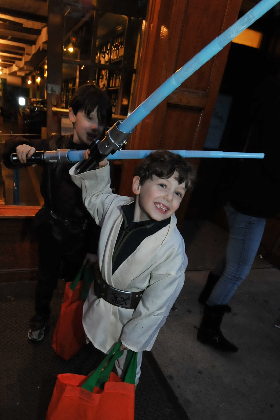 5:55 PM. Jedis from Star Wars with blue lightsabers.