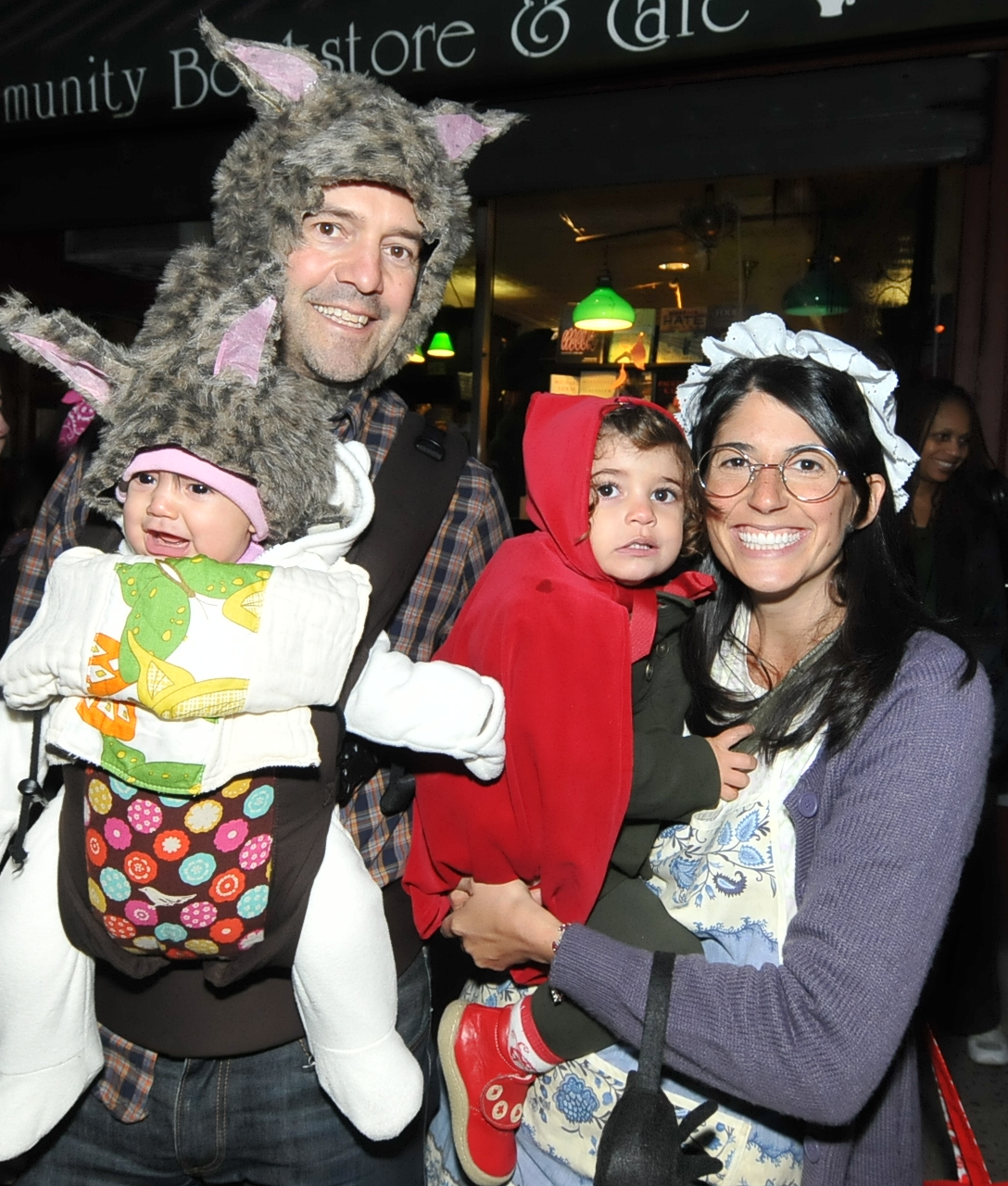 6:04 PM. Little red riding hood, big bad wolf, little bad wolf and grandma. At this point I fortunately realized that my camera flash was still set on Back Light, which doesn't work well when it is expected to be the primary source of light.