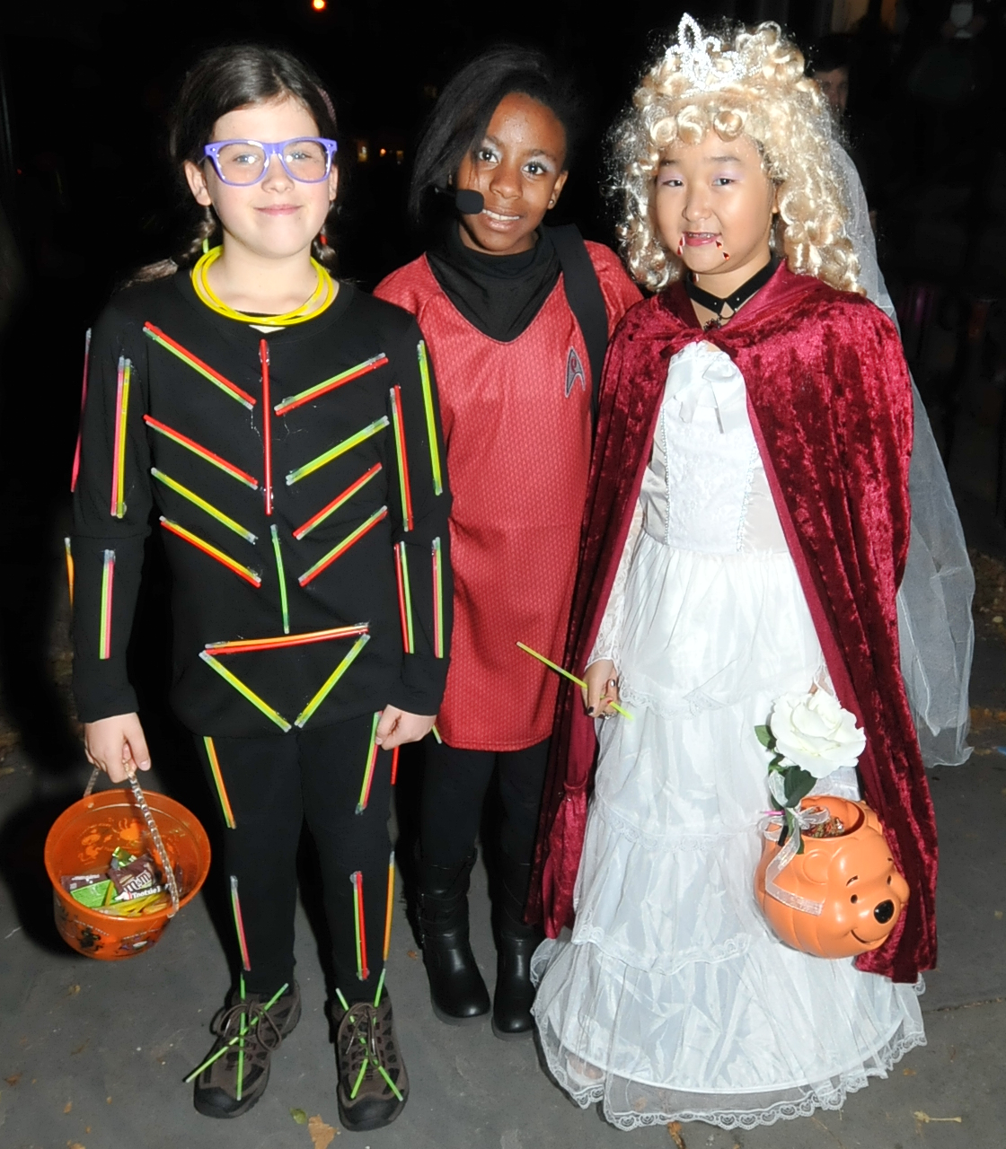 6:19 PM. Light-up sticks making a skeleton. A Starfleet officer from