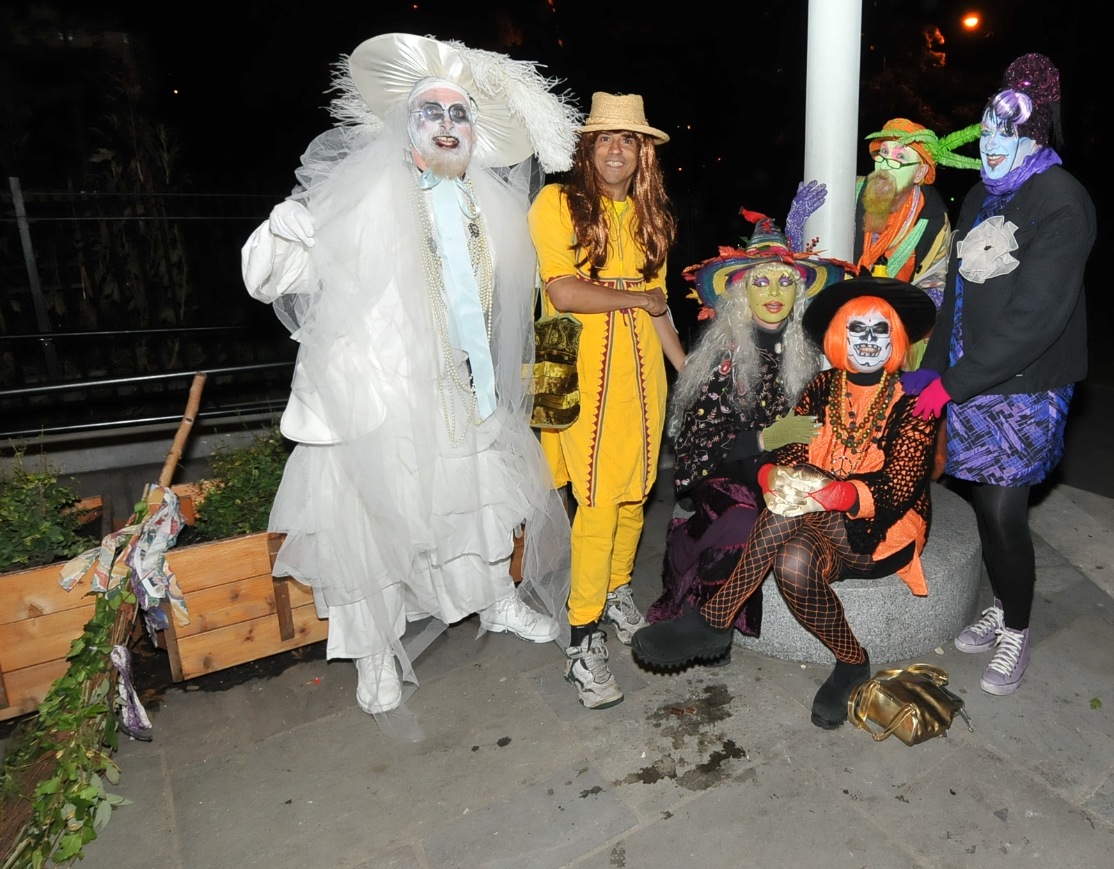 7:46 PM. A theme? The first is a ghost. Next in Indian clothing. Then two witches sitting. Behind ?