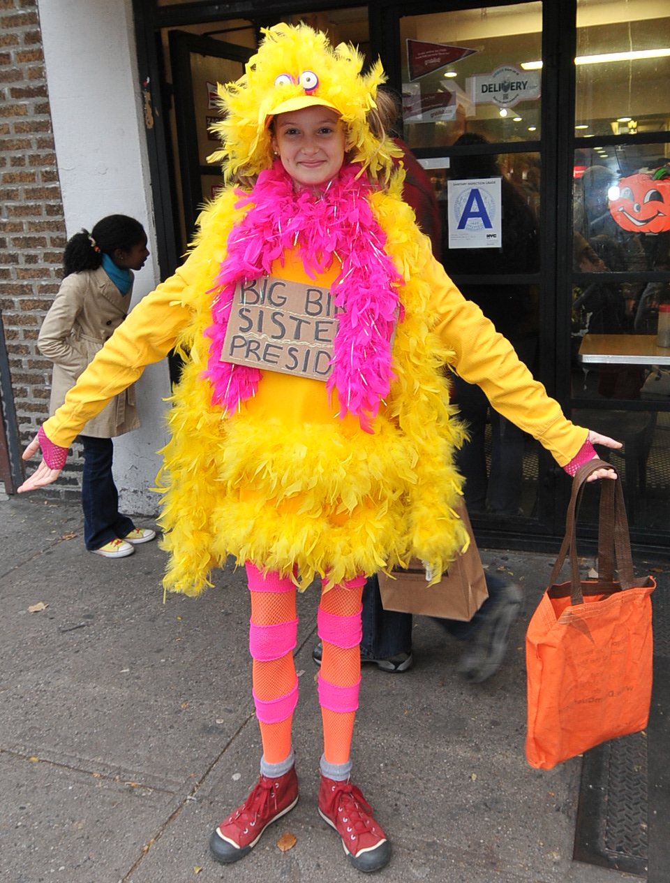 . In 1975, Big Bird announced he was running for president in a song. Here we have "Big Bird's Sister for President."