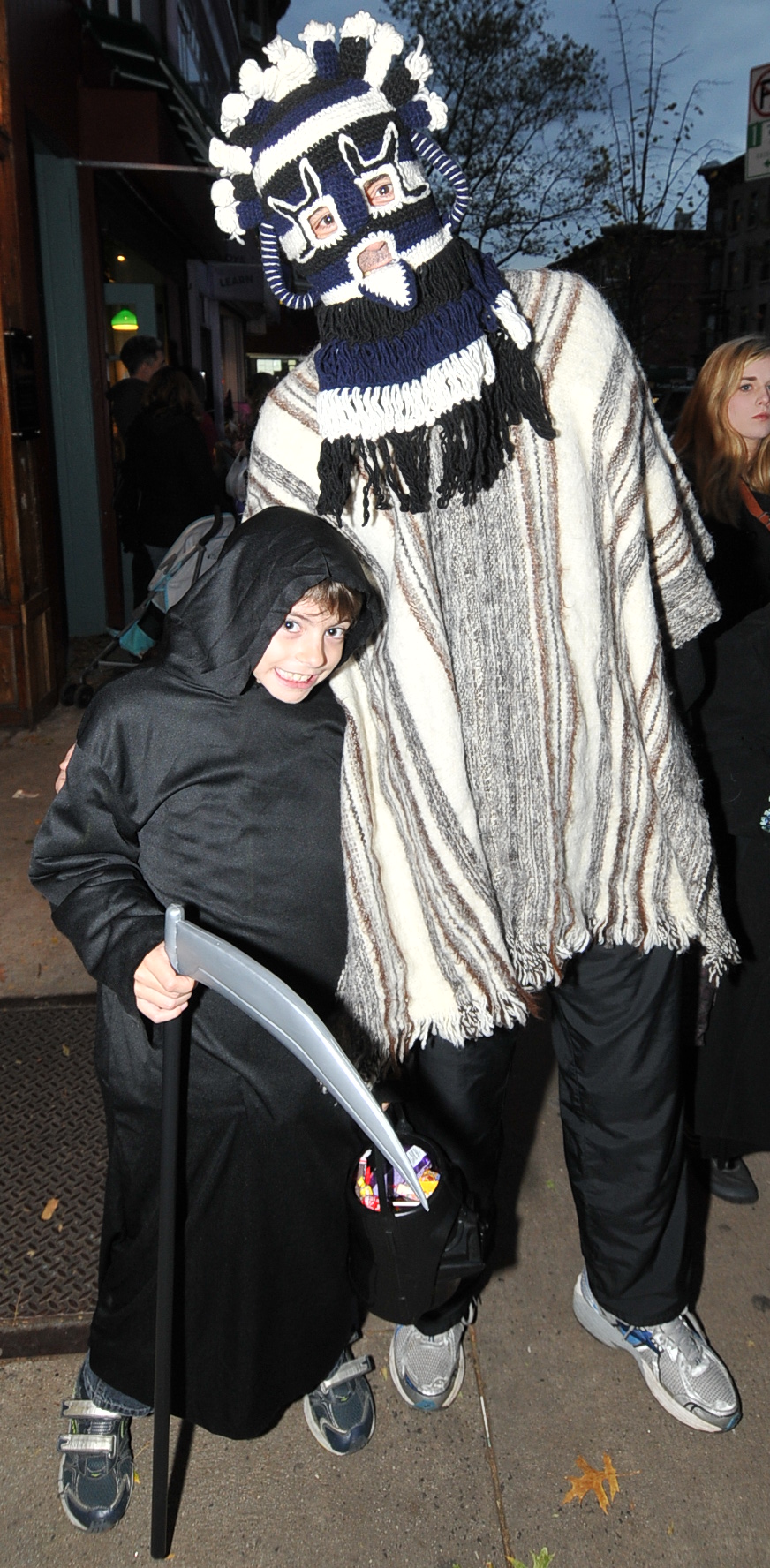 5:47 PM. A little grim reaper, and an Ecuador mask and poncho.