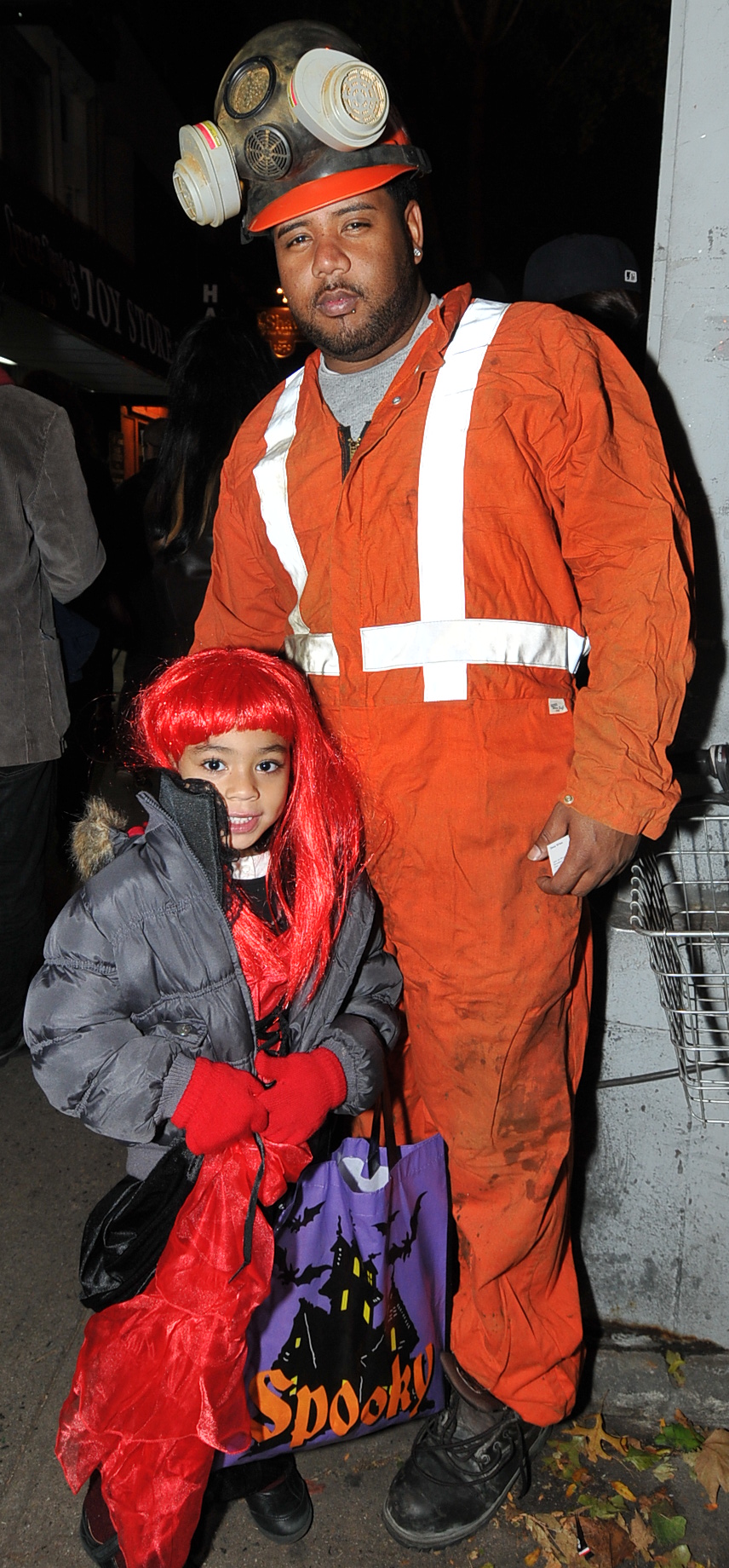 6:18 PM. A orange jump suit and respirator helmet. ?