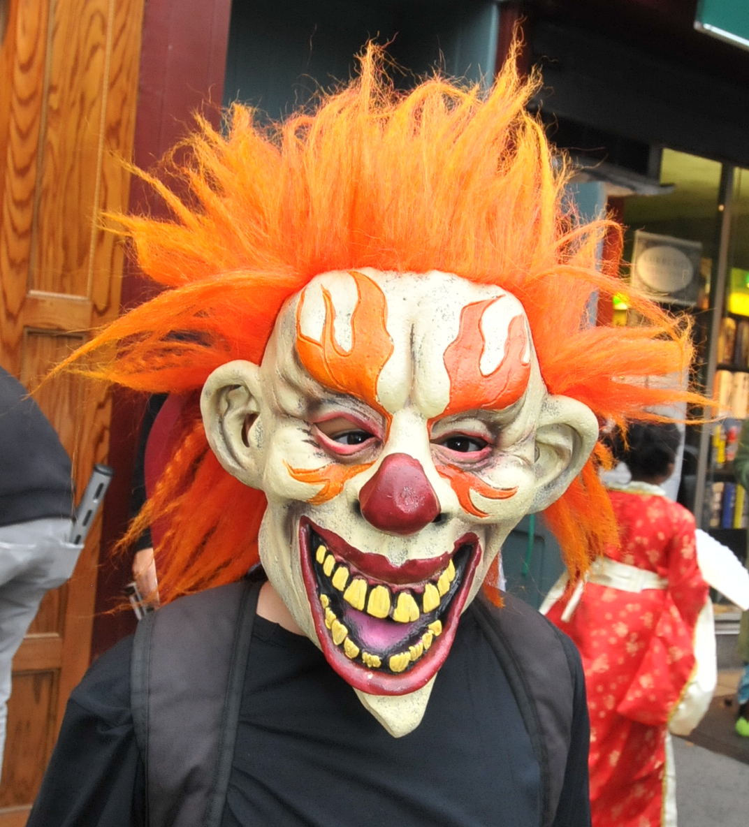 4:51 PM. A Flame Clown Mask. The basic Google Lens thinks this is a face, and returns no results. AI Mode describes the mask. Yandex found the mask all over the web.