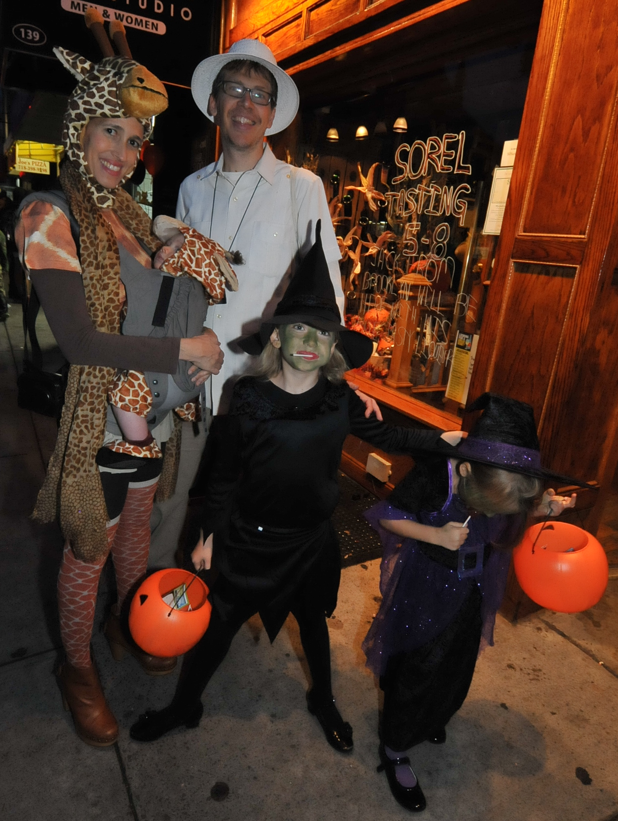 5:57 PM. A giraffe holding a baby giraffe. A game warden. Wicked Witch of the West, and ?
