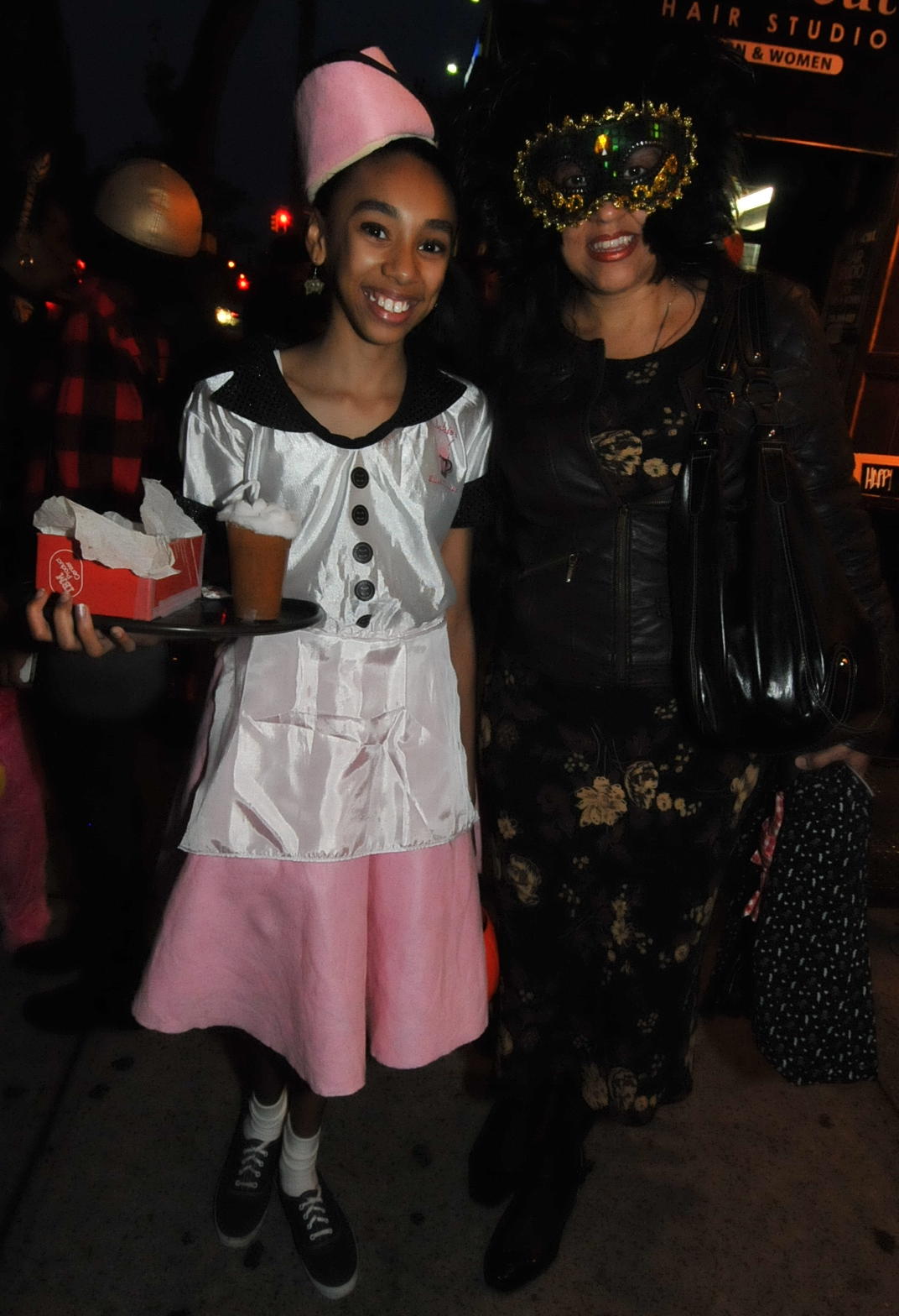 6:10 PM. A 50's Car Hop (or Soda Pop) Waitress and a witch.