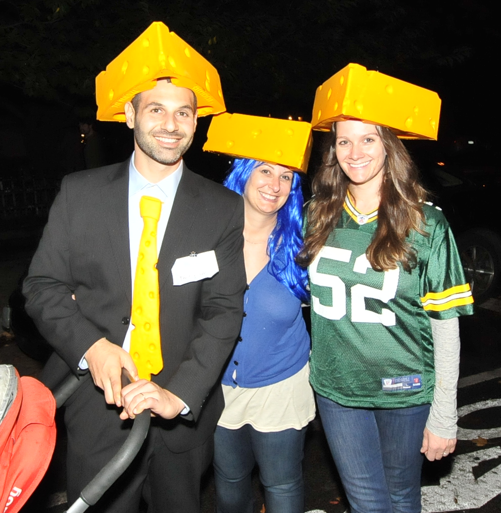 6:59 PM. Three Cheeseheads, a popular symbol for fans of Wisconsin sports teams, especially the Green Bay Packers.