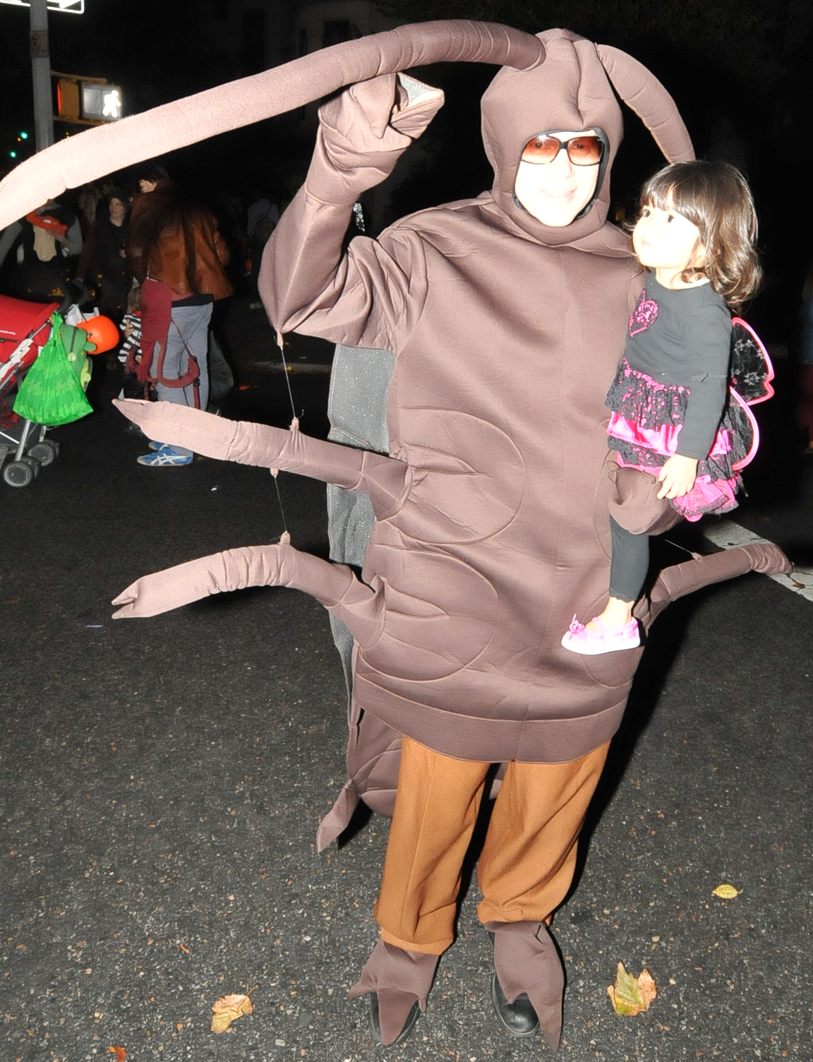 7:31 PM. A cockroach costume.