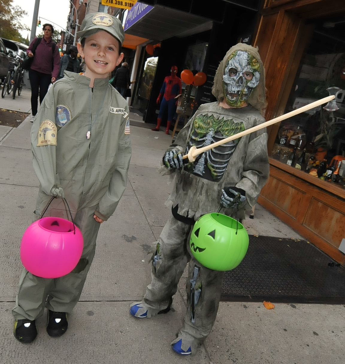 4:11 PM. A U.S. Air Force flight pilot suit and a zombie skeleton.