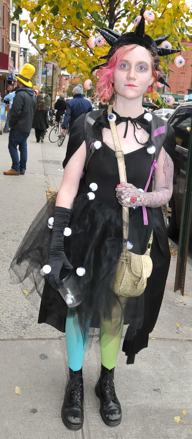 4:25 PM. A goth-inspired Halloween look? Why all the eyes and spiked head?