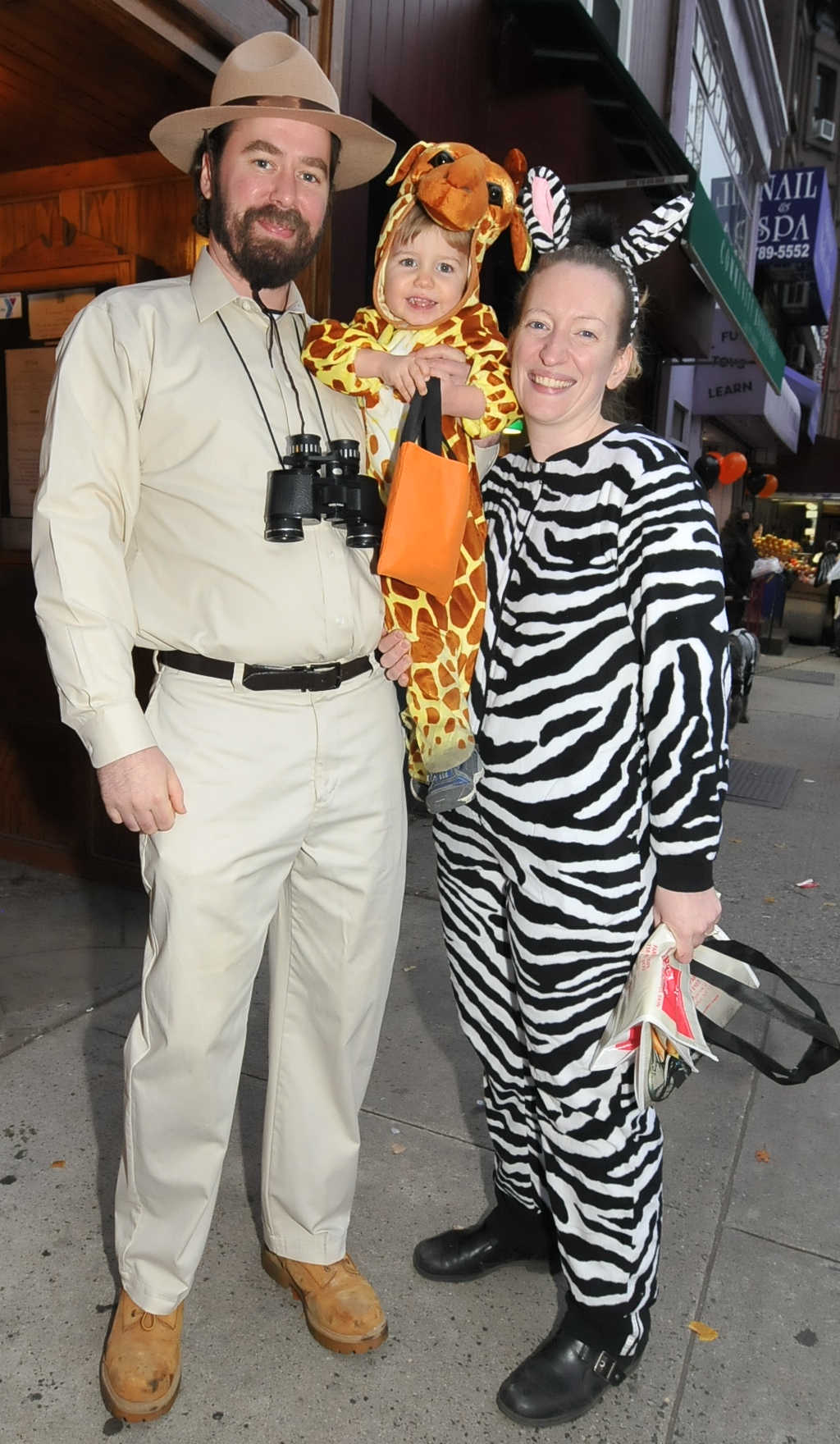 5:26 PM. A park ranger with a little giraffe and a zebra.