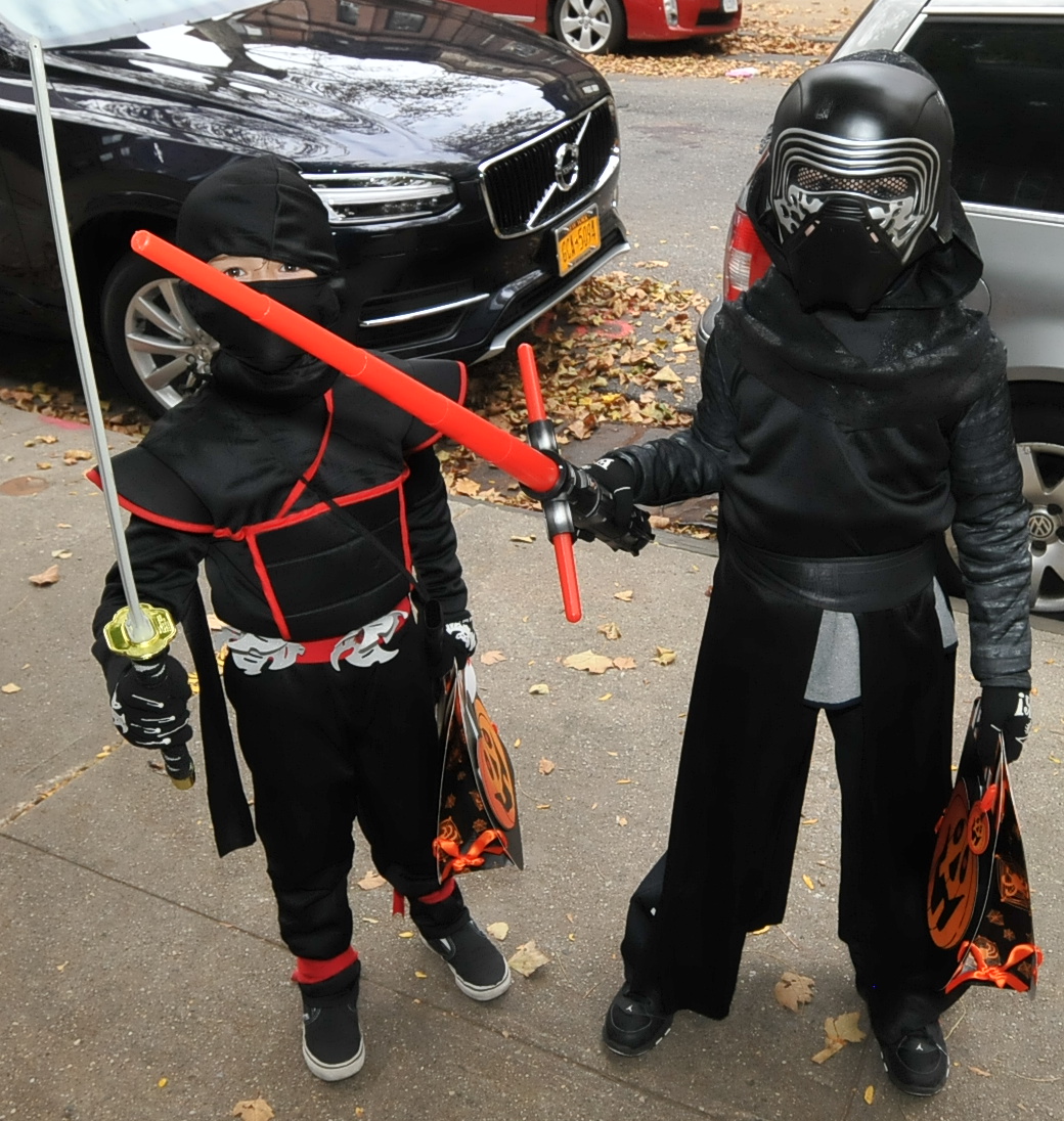 3:27 PM. A ninja, the other dressed as Kylo Ren from the