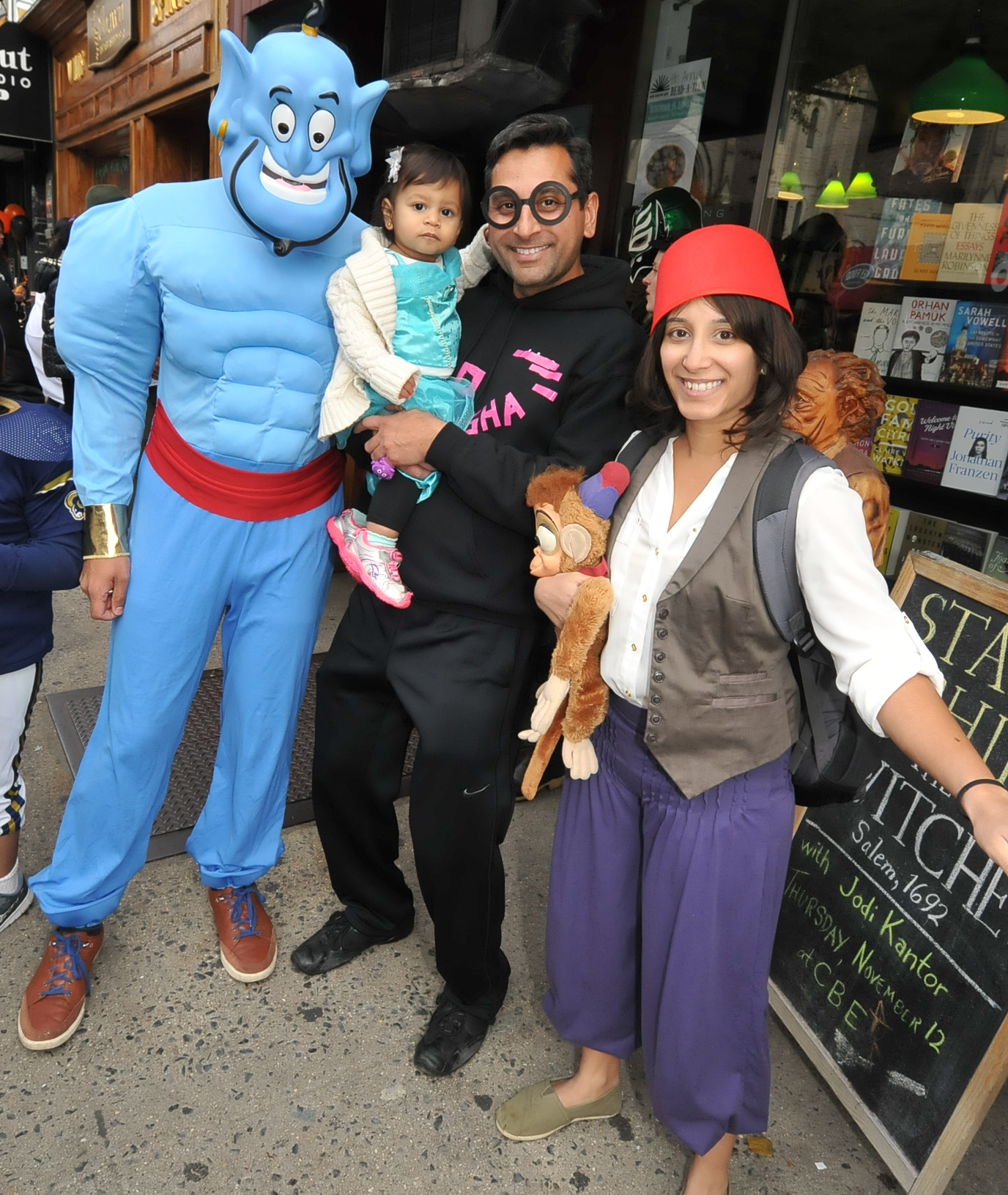 family: Genie, Jasmine being held by ?, Aladdin, and Abu the monkey sidekick.