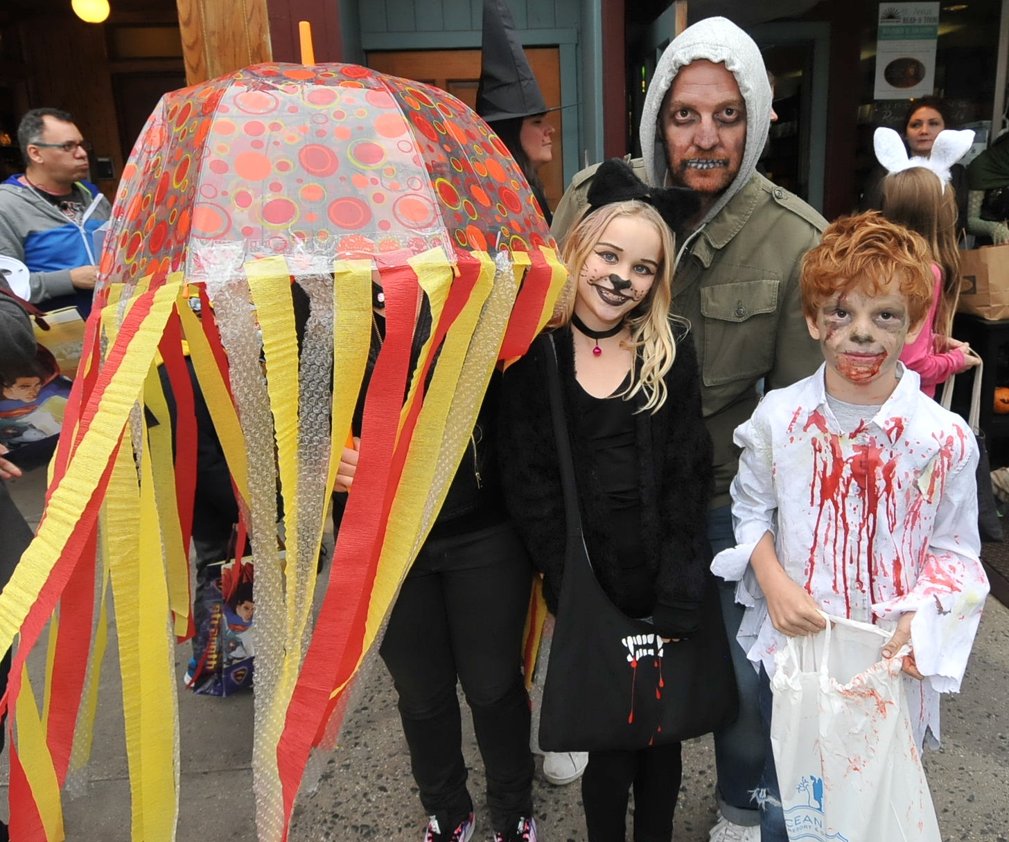 4:14 PM. A jellyfish, a cat, a zombie, and a lab zombie covered with blood.