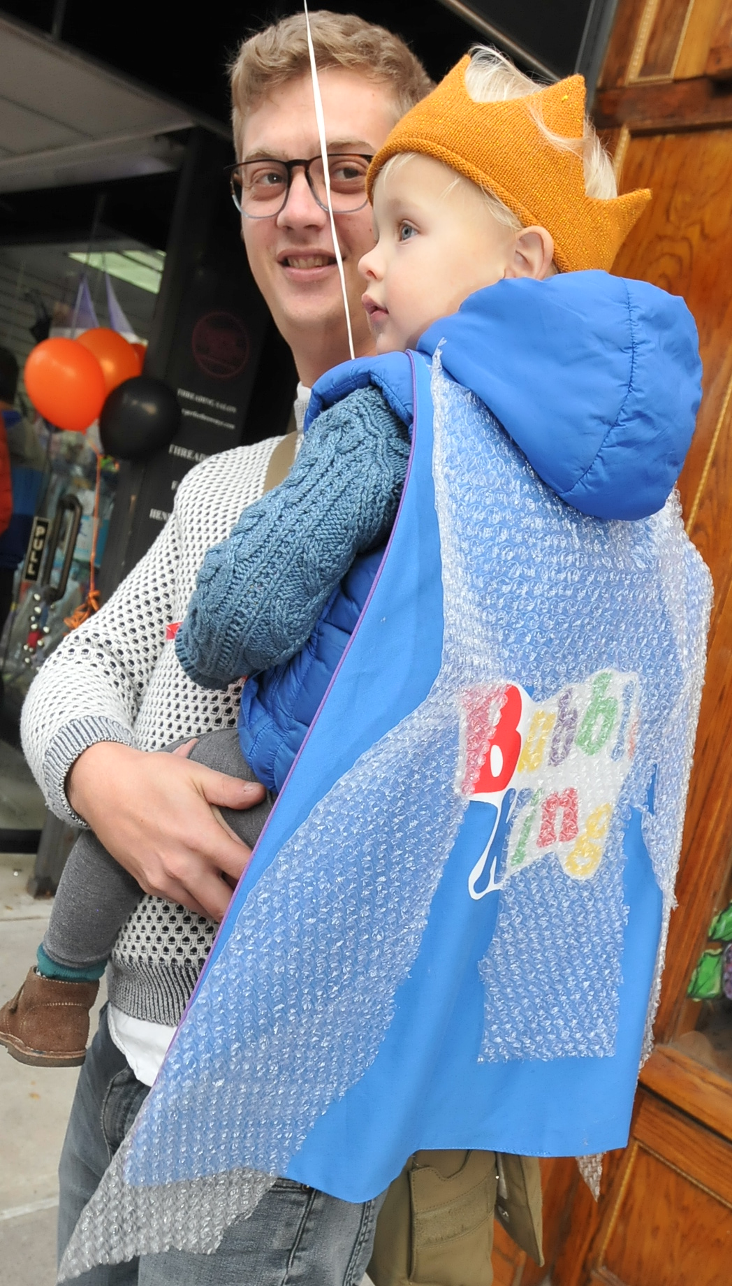 4:49 PM. The child is wearing a "Bubble King" costume. Candy gumballs.