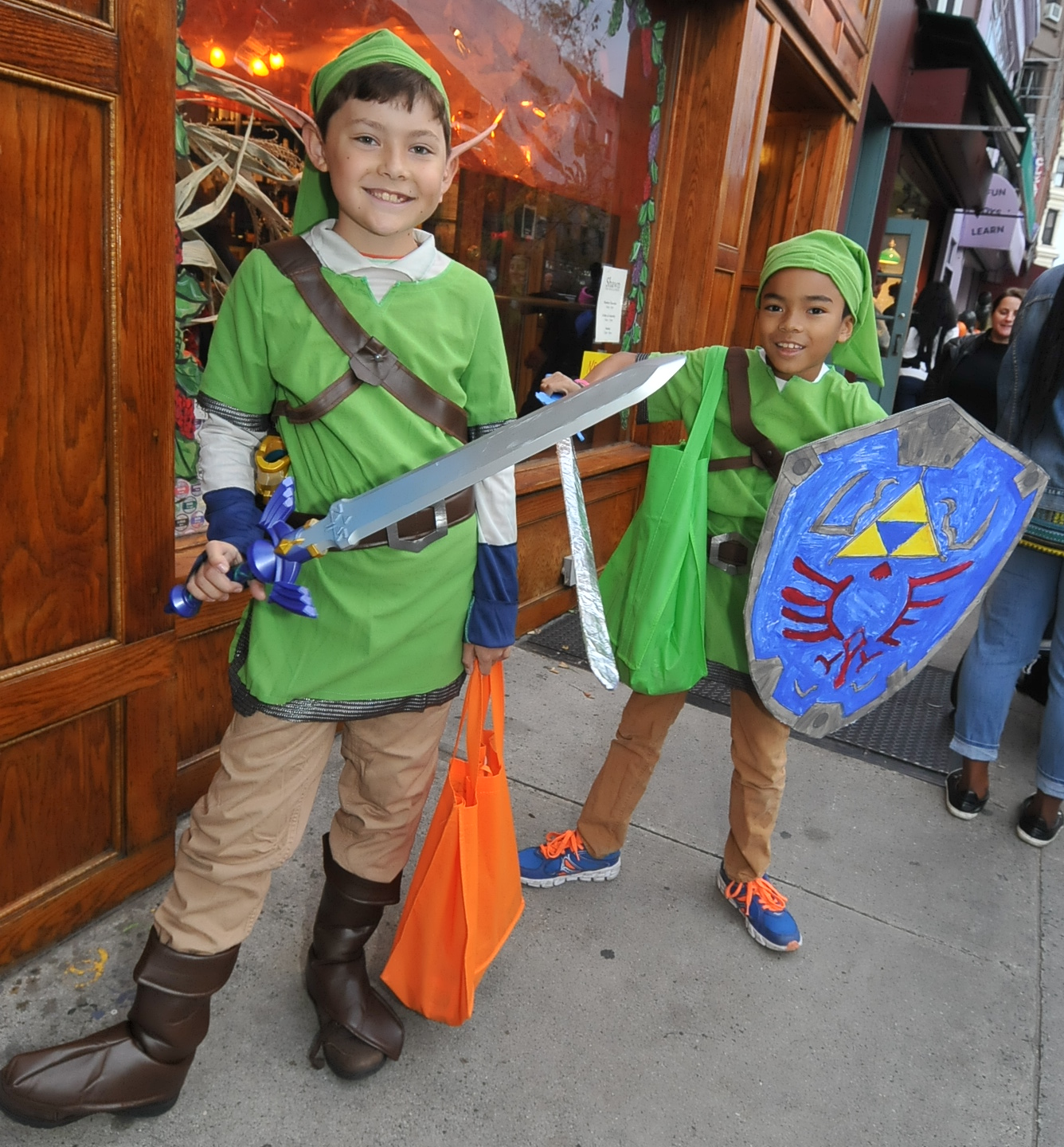 5:23 PM. Both dressed in costumes of Link, the main character from the video game series