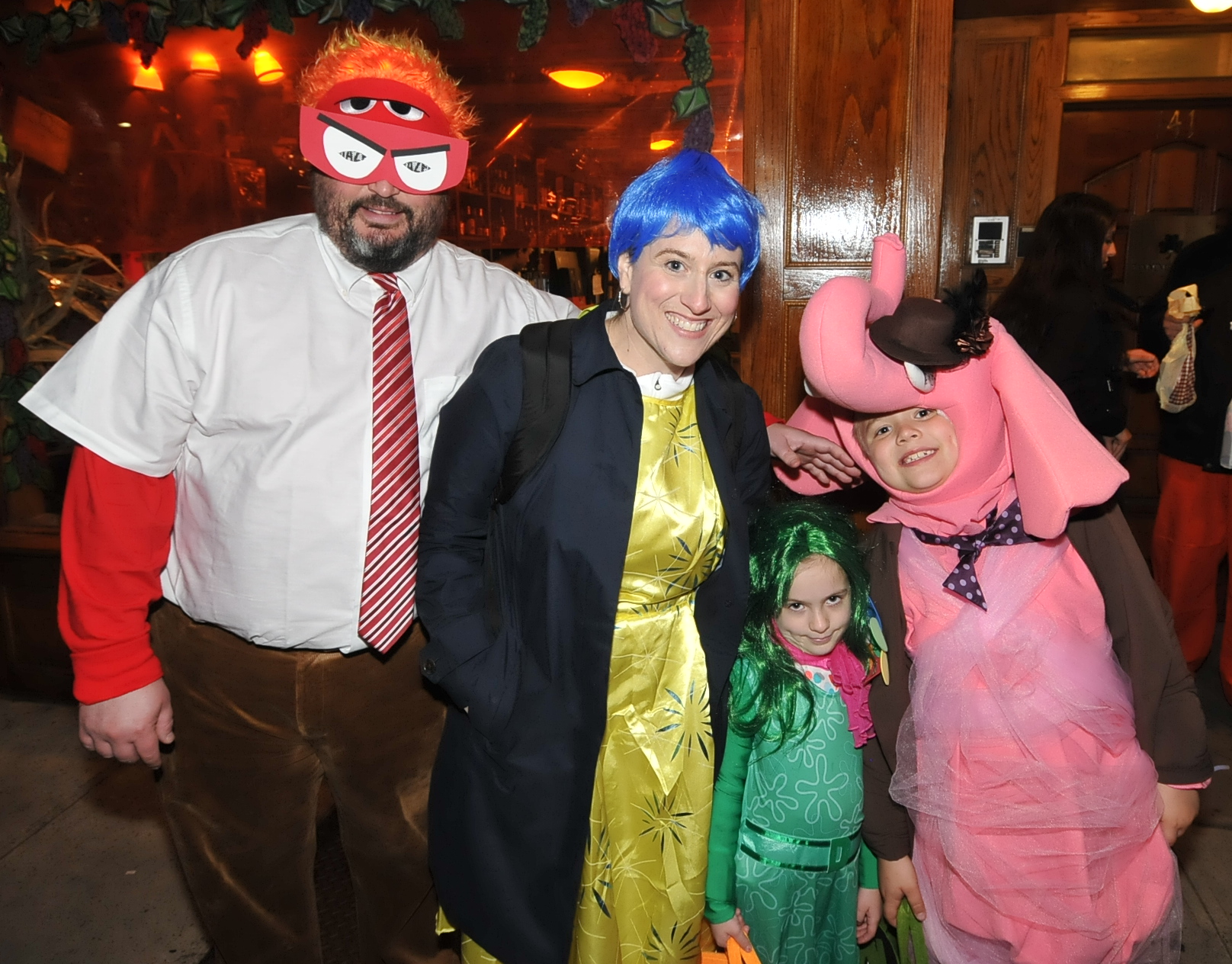 franchise: Anger, Joy the protagonist, Disgust in green, and Bing Bong the pink elephant.