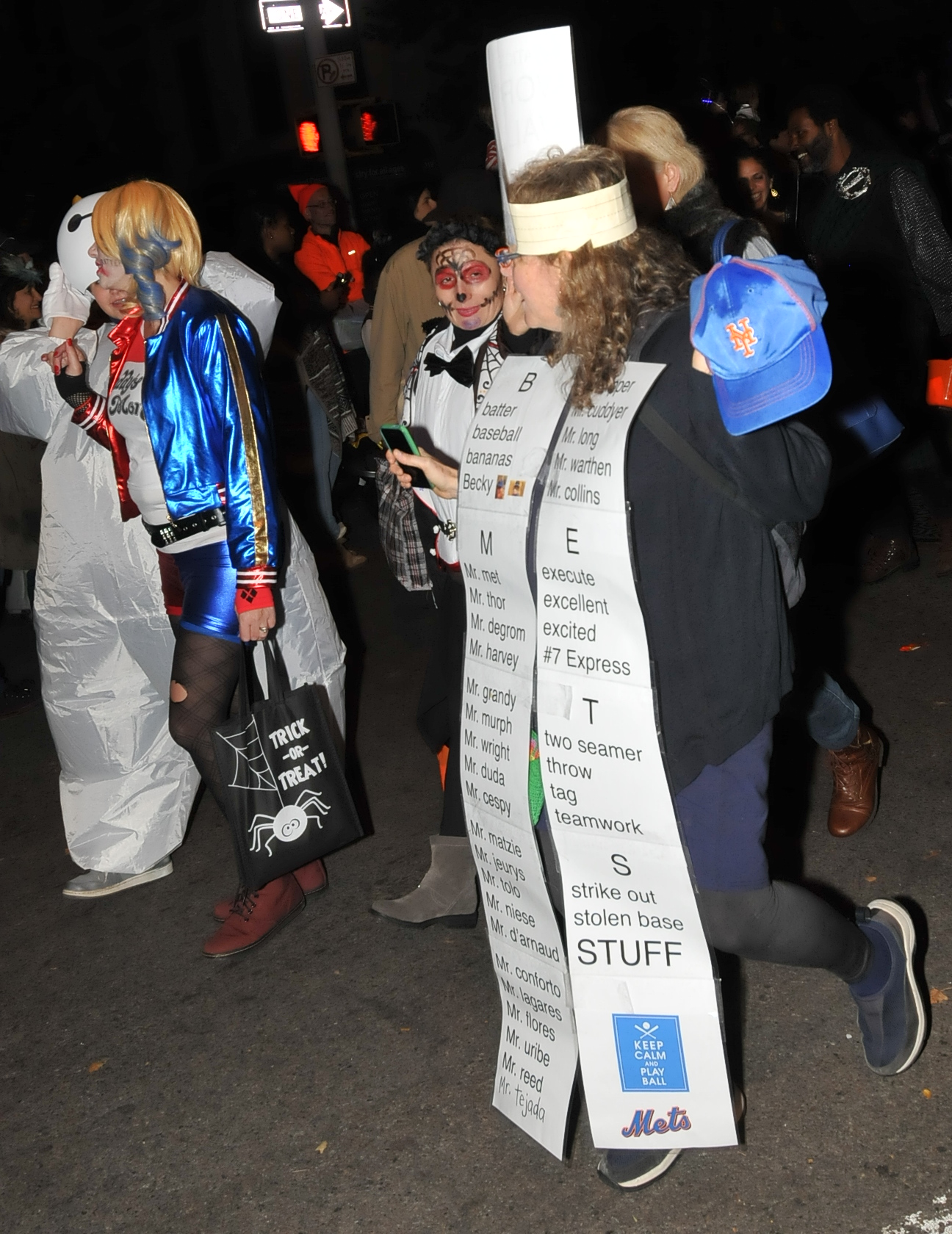 7:27 PM. A Metz fan dressed as "STUFF" from the 2015 New York Mets season.