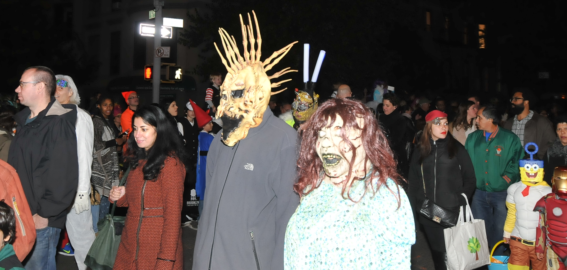 7:31 PM. A full-head mask of a skull with a punk-style mohawk. With a zombie.