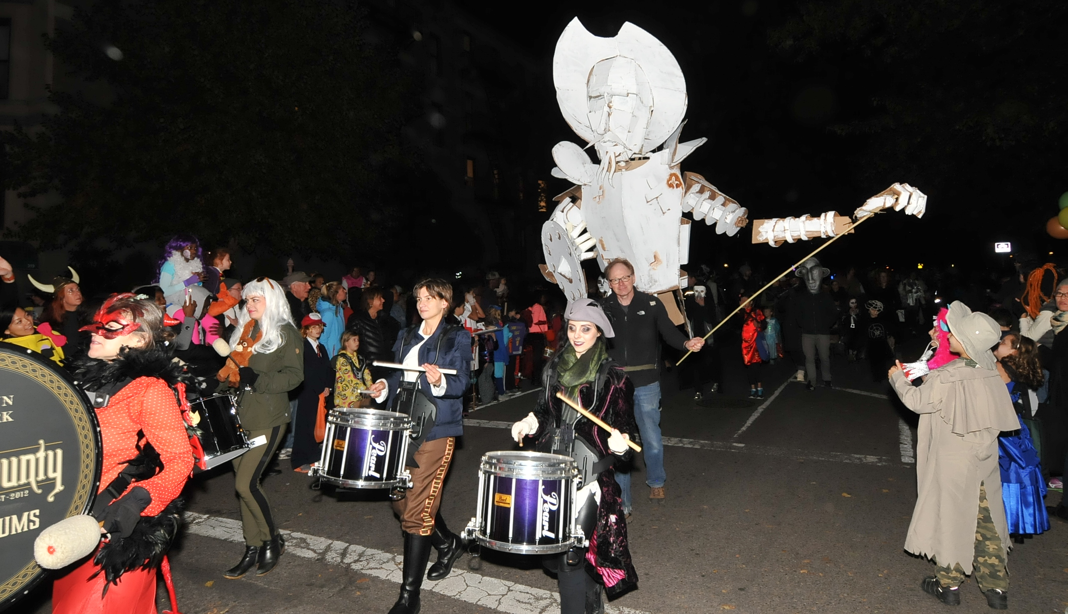 , then a large puppet of a cowboy with a shield. Could be Colonel Sanders.