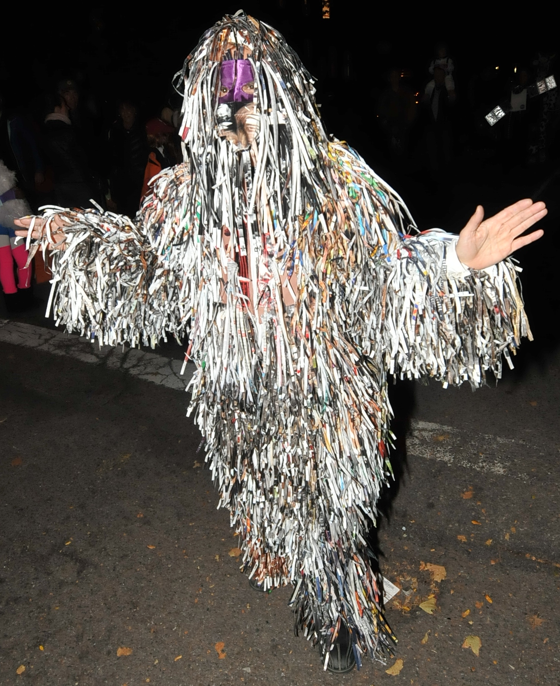 7:40 PM. A shredded paper costume.