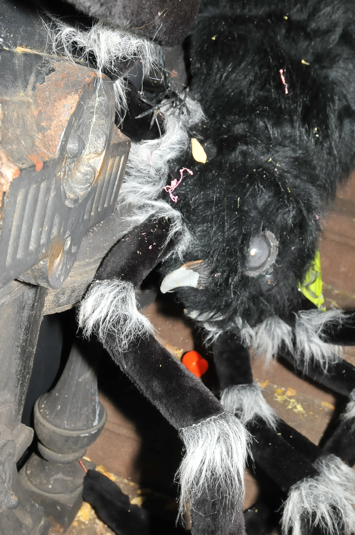 8:13 PM. A big black spider on a stoop.