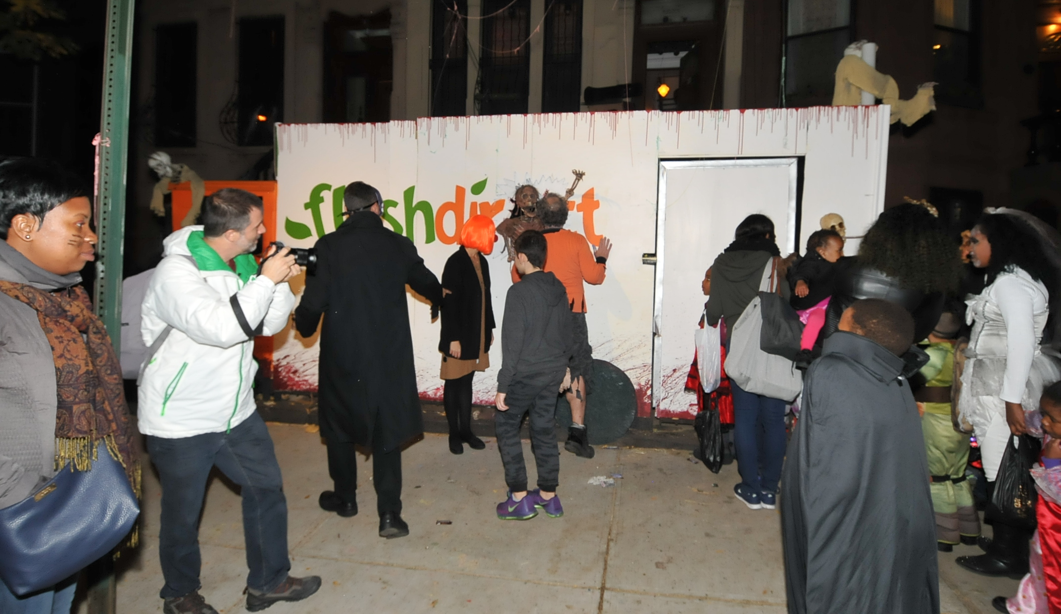 8:15 PM. A group in front of the haunted house on 2nd St.