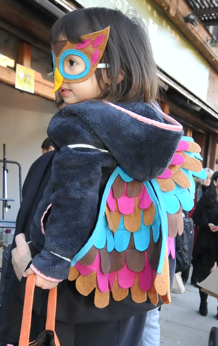 4:35 PM. An owl. The costume was bought from a small shop in Maine. Undoubtedly hand made in Maine.