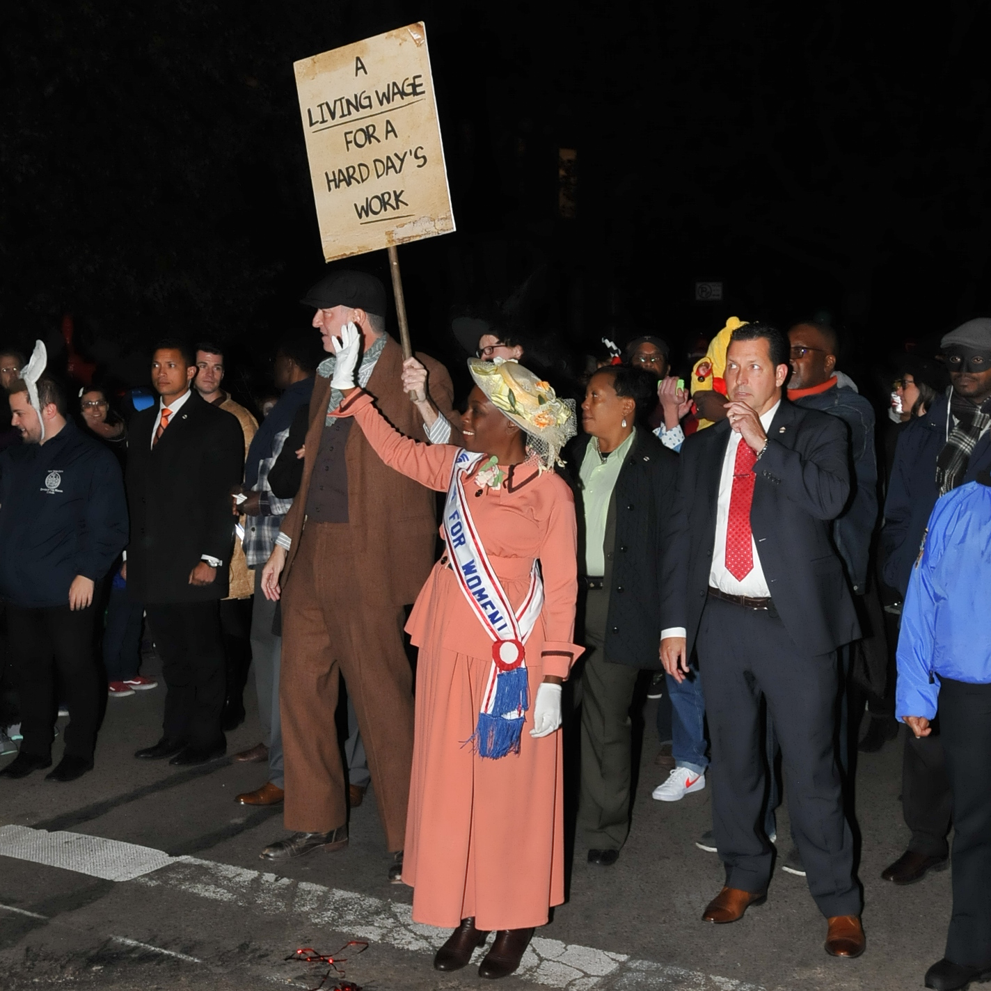 7:19 PM. Mayor Bill De Blasio and his wife Charlene. The mayor os hold a sign: "