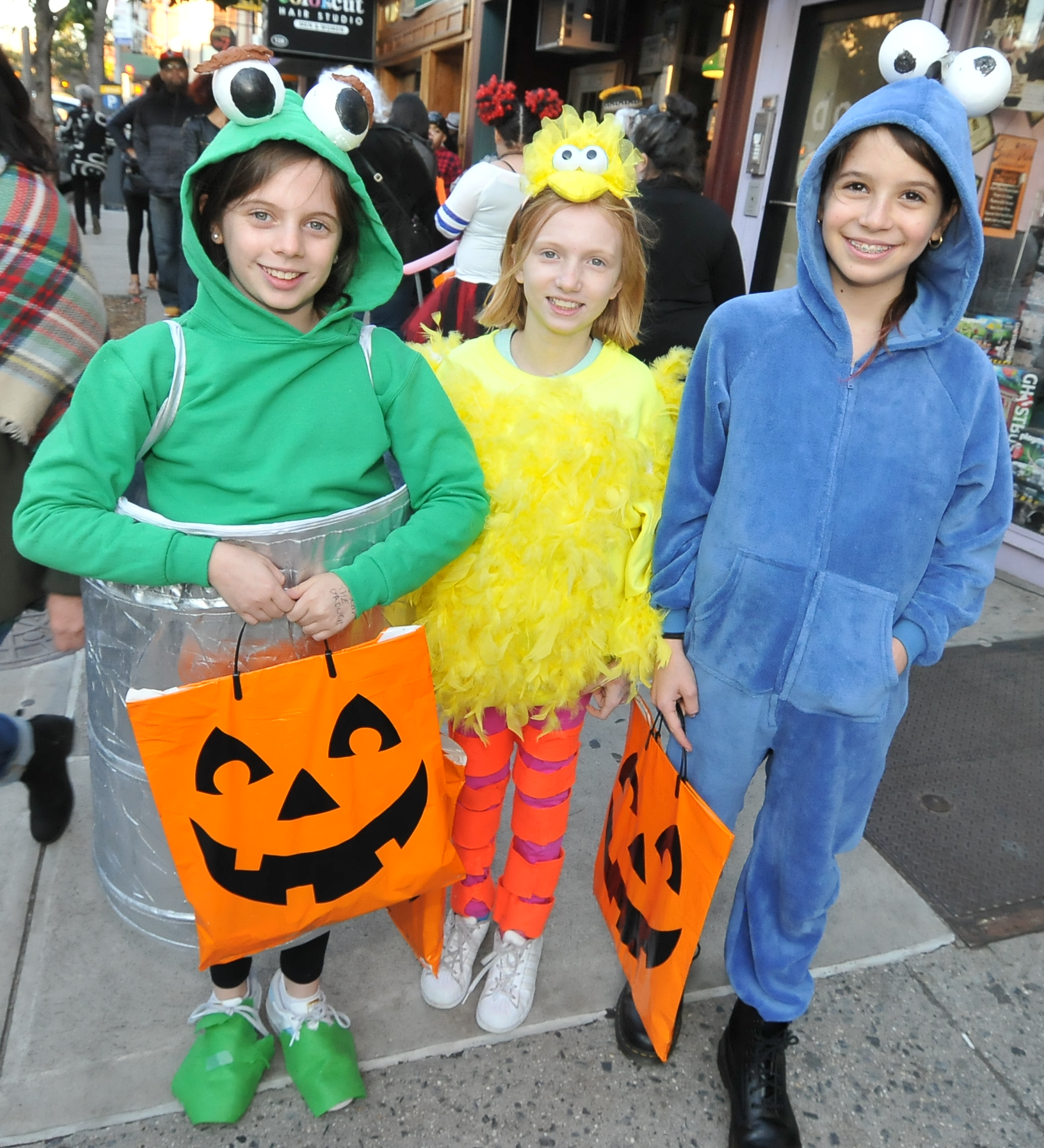 5:15 PM. Two frogs with a chicken. One frog is in a can. Costumes homemade.