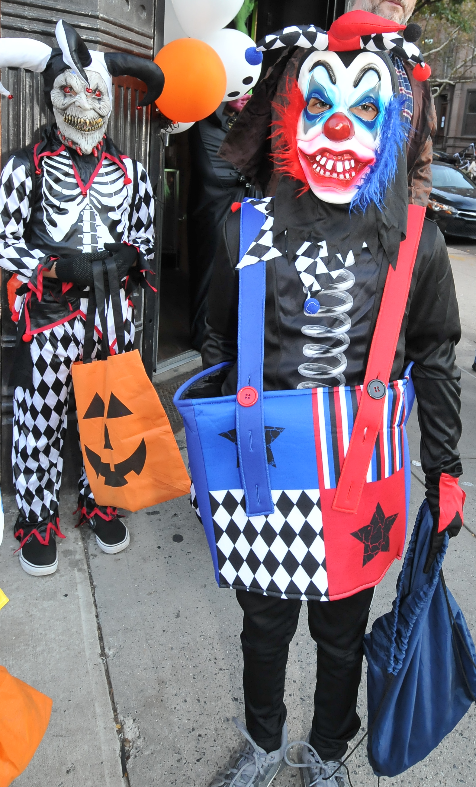 5:21 PM. A Sinister Jester costume from Amscan, and a Freak in a Box from Blossom Costumes.